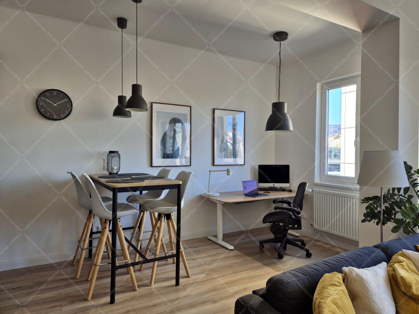 A stylish, fully renovated, 57 m² apartment is available for rent, located on the 4th floor of a building with an elevator.