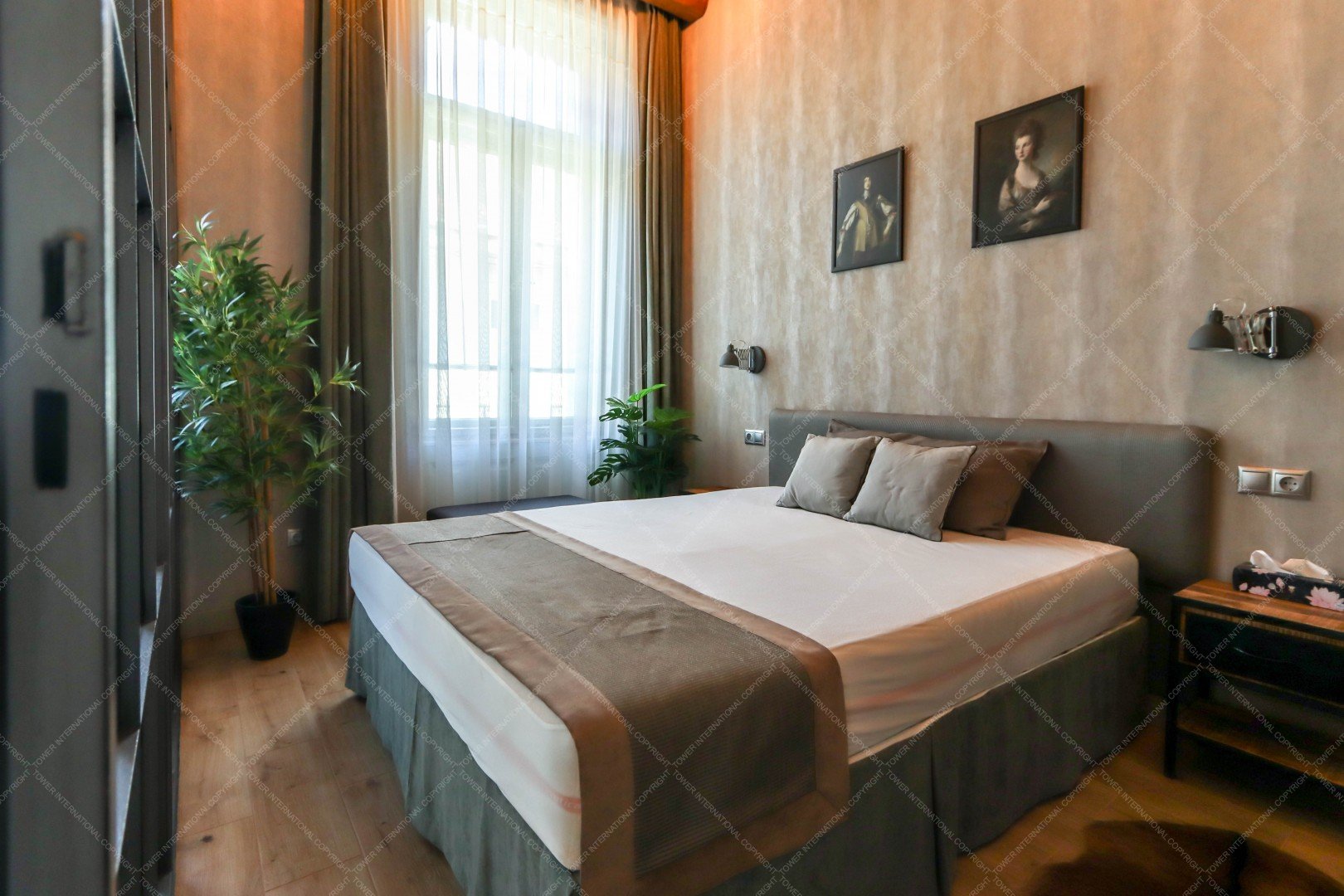 We offer a furnished 50 sqm luxury apartment with a very nice design in district 5th in Váci utca. It is situated on the 5th floor in a classical building. The windows face the courtyard. The apartment is newly renovated. It consists of a huge living room, open plan kitchen, 1 bedroom, 1 bathroom with toilet.