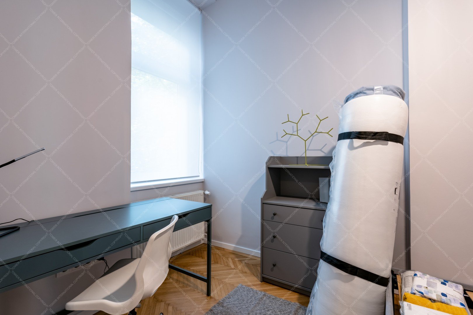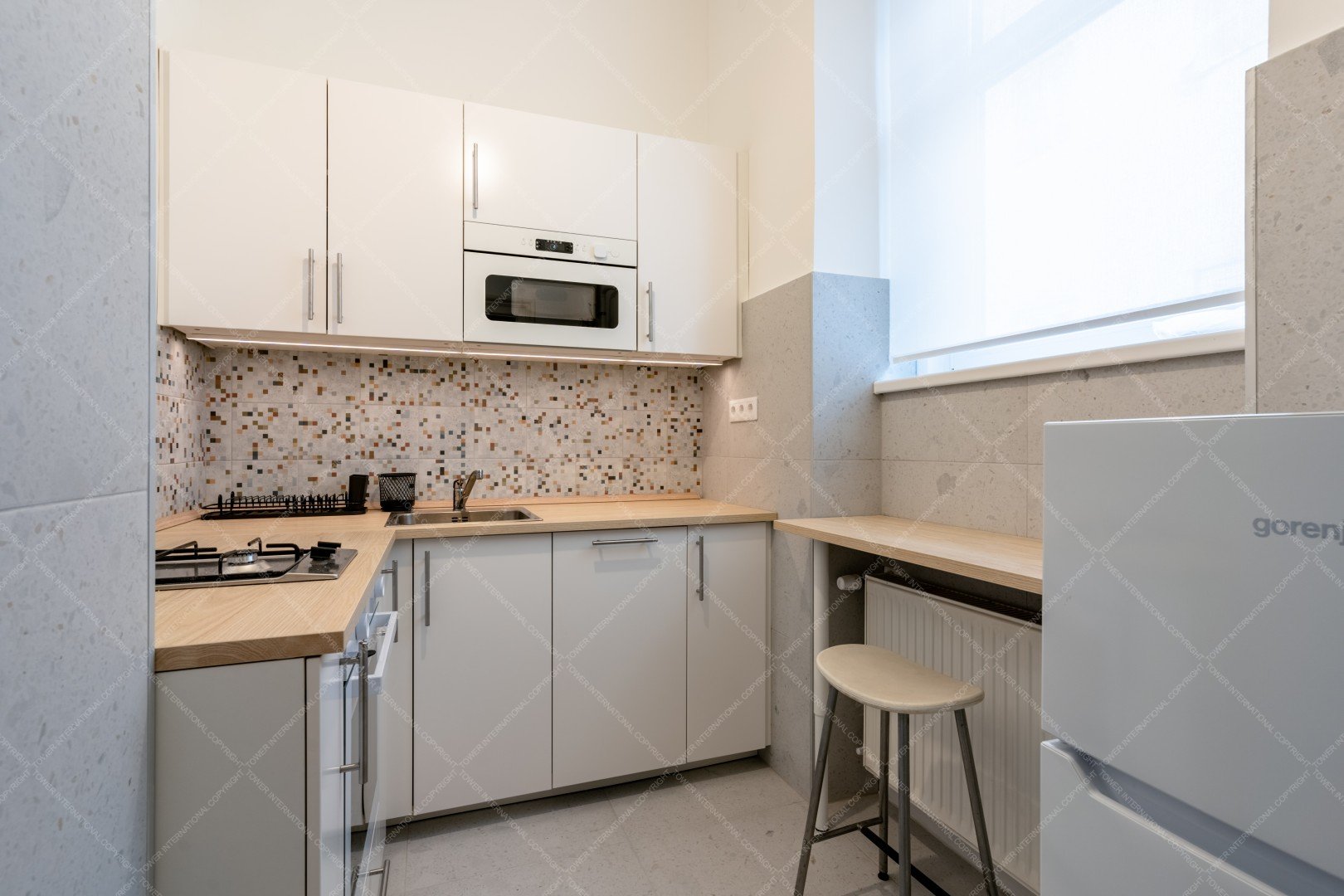 The west facing apartment has one living room, one bedroom, a separate kitchen and a bathroom. The property is facing the internal garden.
