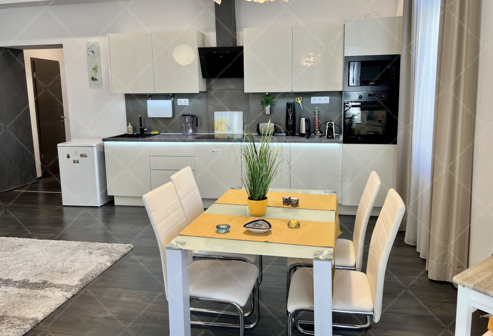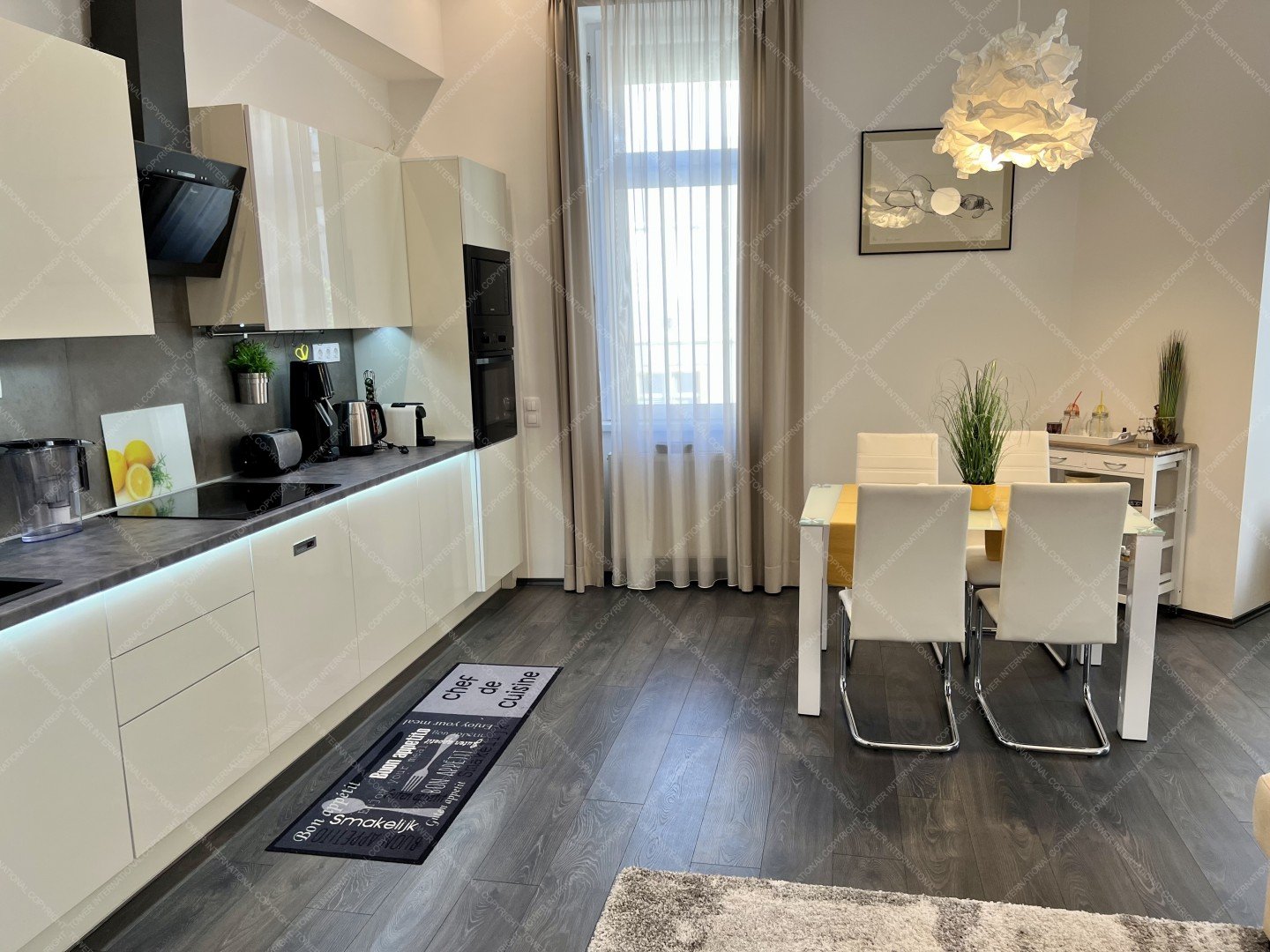 An elegant, fully renovated 2nd-floor apartment is available for rent near the Buda Castle. It features an open-plan living room with an American-style kitchen and two separate bedrooms. All wiring, flooring, and doors/windows have been replaced, and a new boiler provides heating and hot water. Two air conditioners ensure a cool temperature during the summer months.