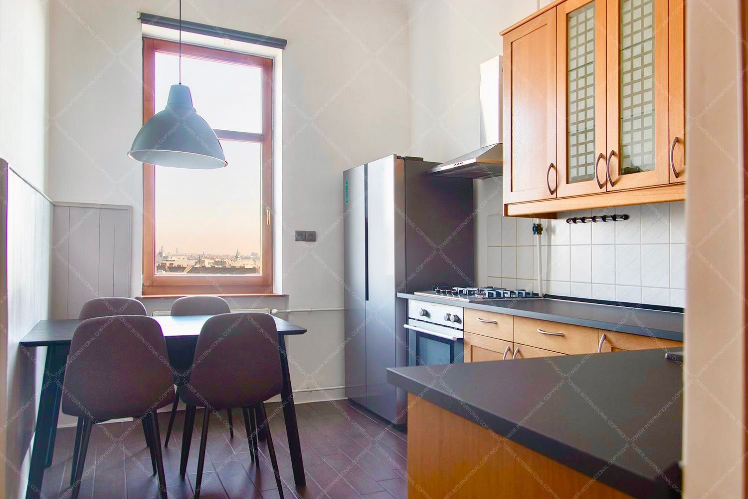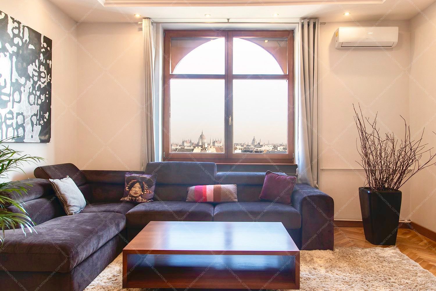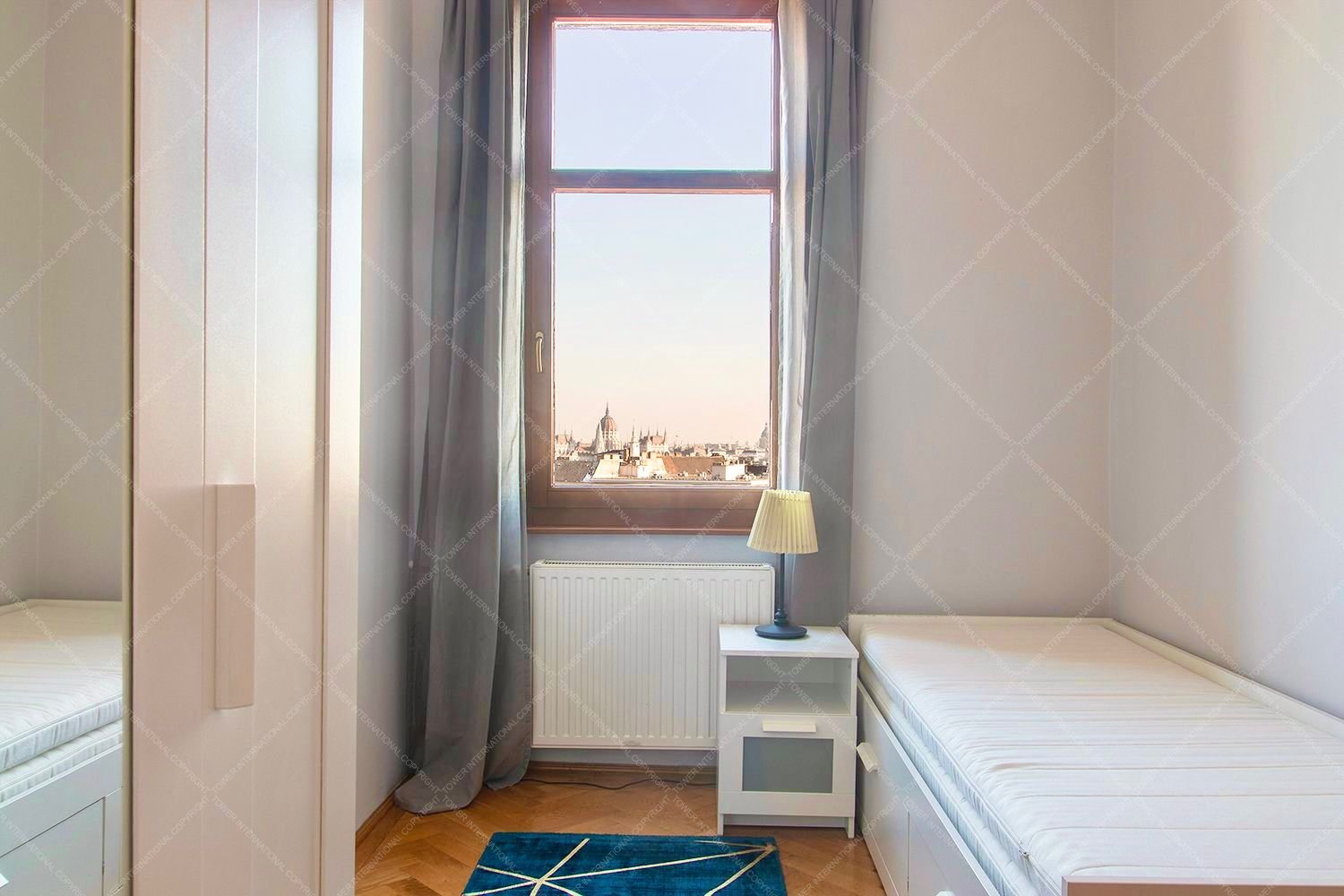 Newly renovated Luxurious 2 bedroom, fifth floor apartment with super panoramic views of the city, bright, large windows, premium furnishings for rent in the 2nd district, right next to Mechwart Liget, excellent transport links, quiet environment.