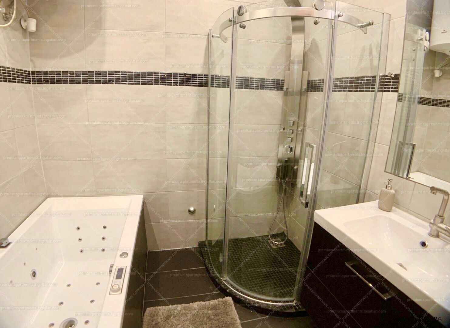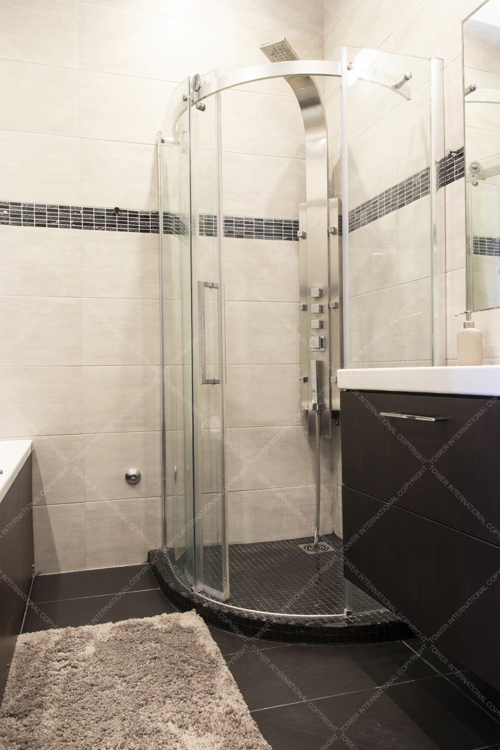 - Bathroom with hydromassage shower, jacuzzi bathtub with lighting, music function
