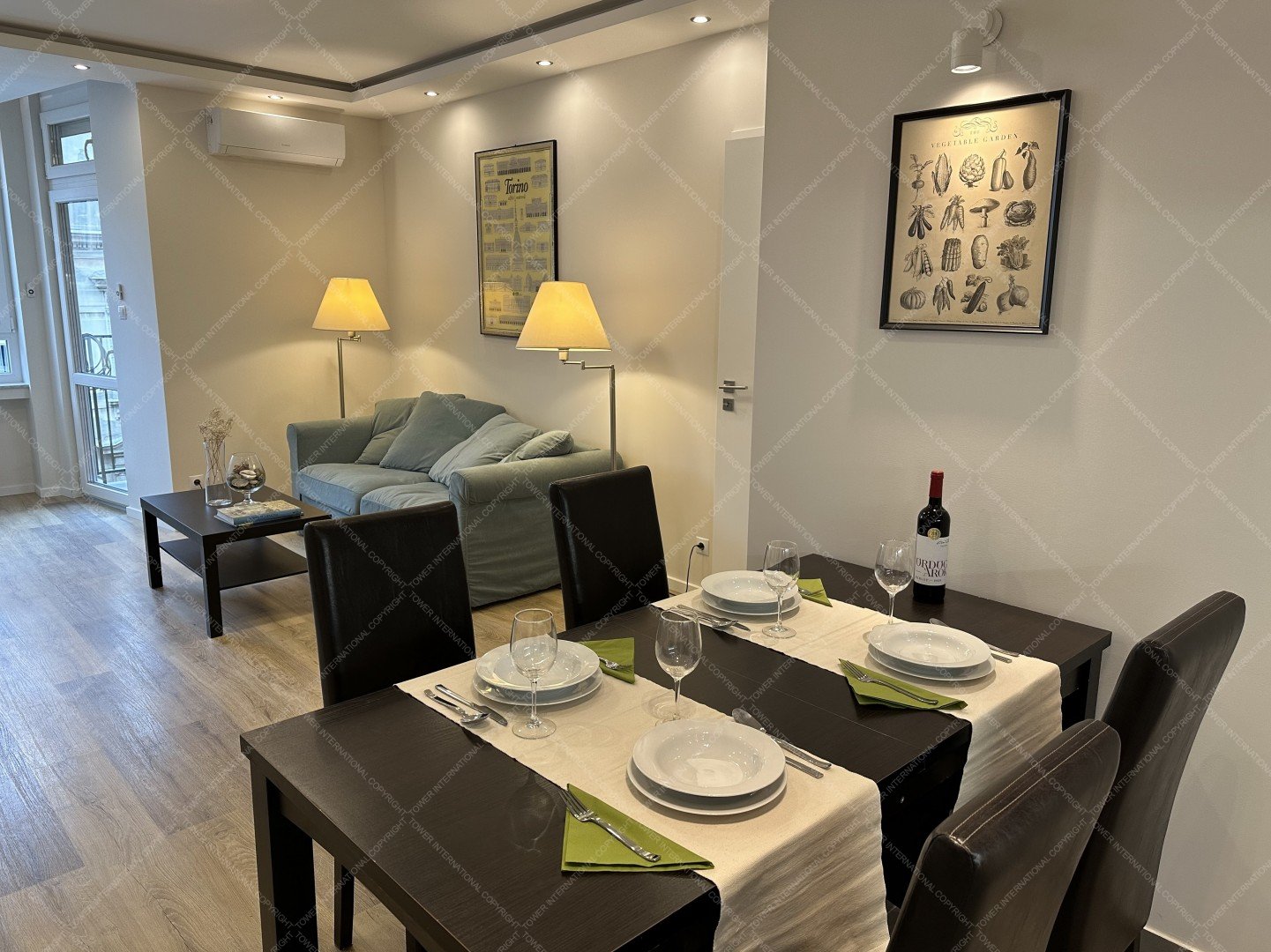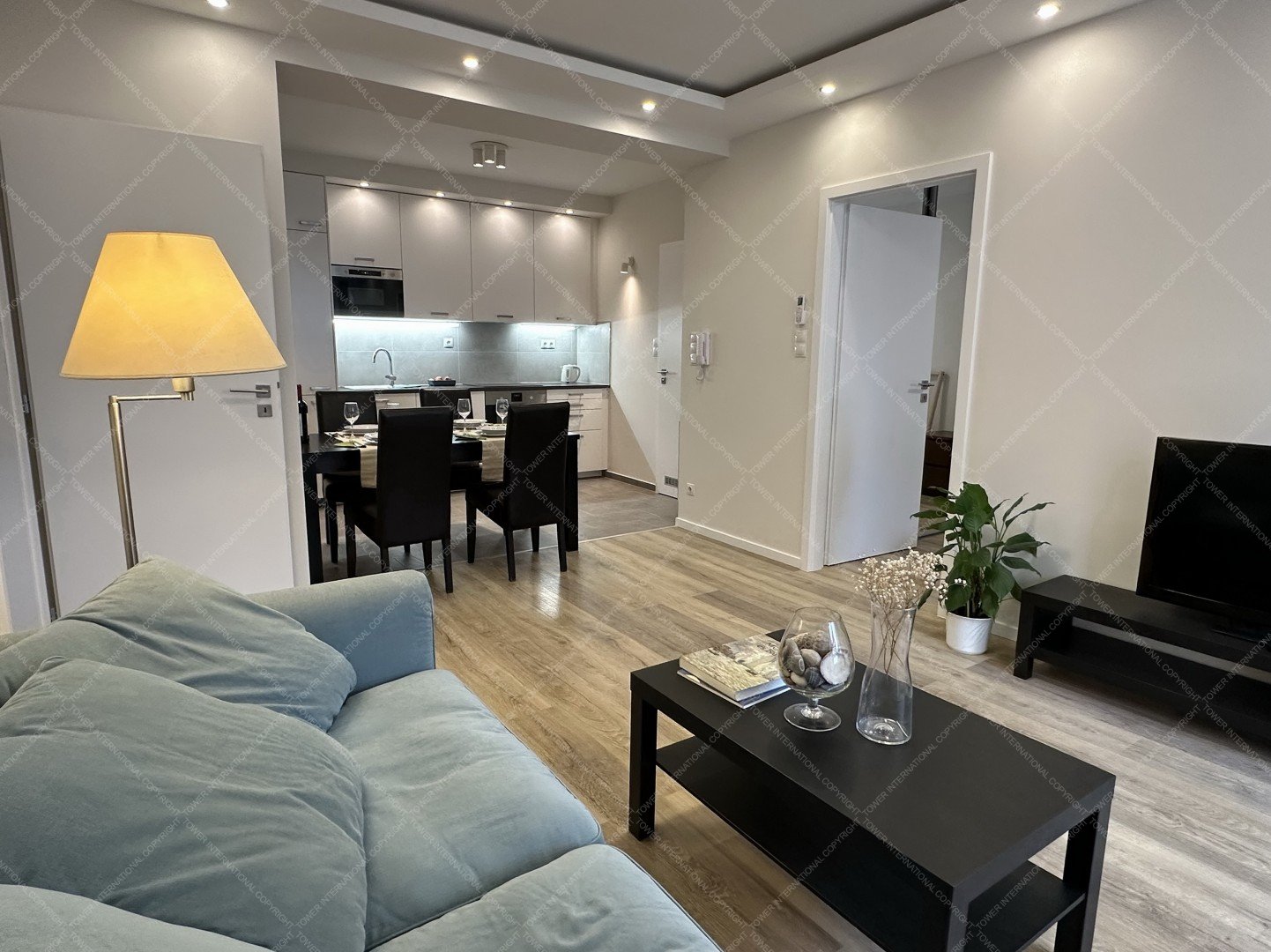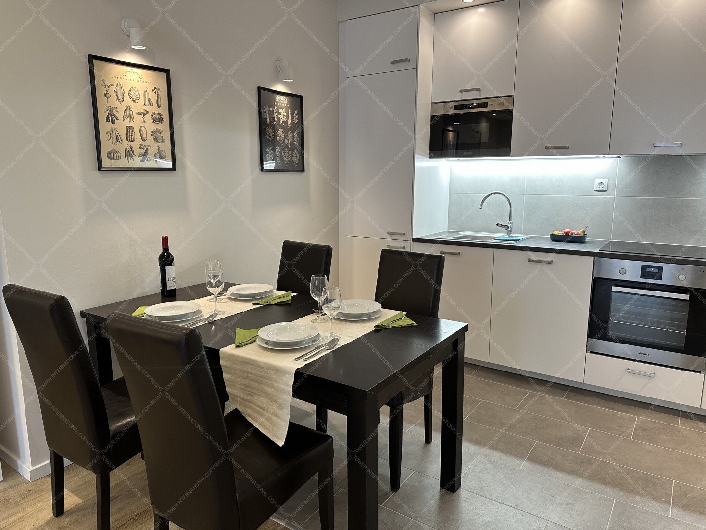 The apartment has a living room with American kitchen, 2 bedrooms, bathroom and balcony.