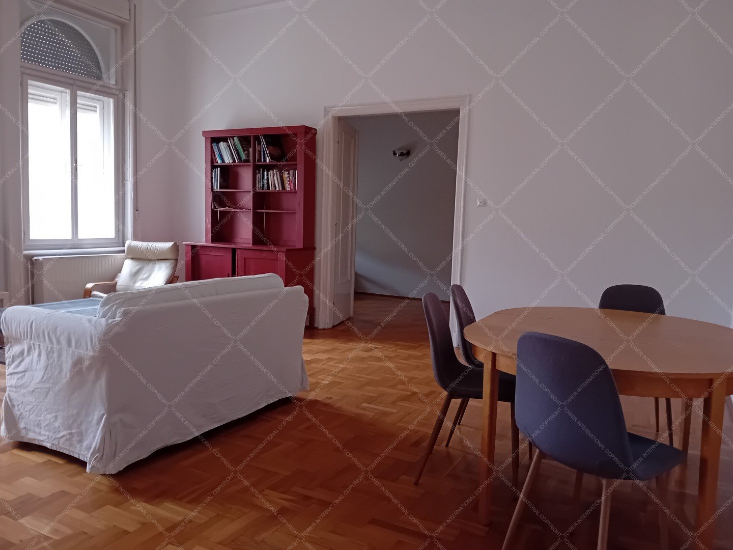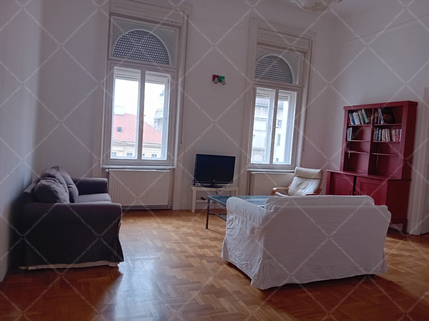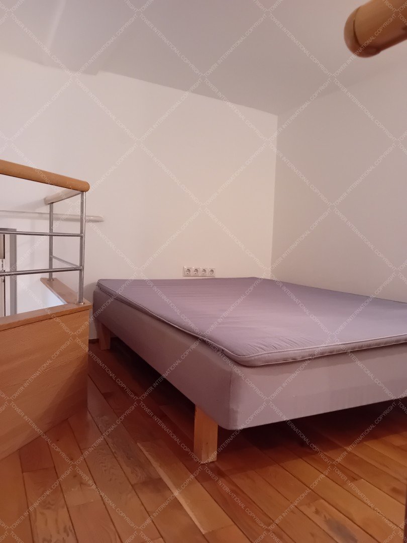 Very bright, 3rd floor (no elevator), apartment for rent. Floor space 72 sqm + 15 sqm gallery. Rooms: large living room overlooking the square, bedroom with double bed, wardrobe, study/guest bed on the gallery, entrance hall with open kitchen, breakfast table, fridge-freezer, microwave, oven, stovetop, dishwasher, bathroom with shower, sink and toilet, storage room with washing machine. The apartment is loosely furnished, common costs are 24,850 HUF/month. No pets allowed!