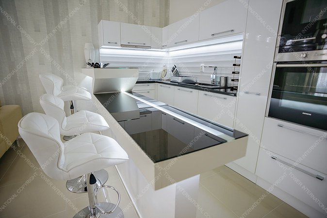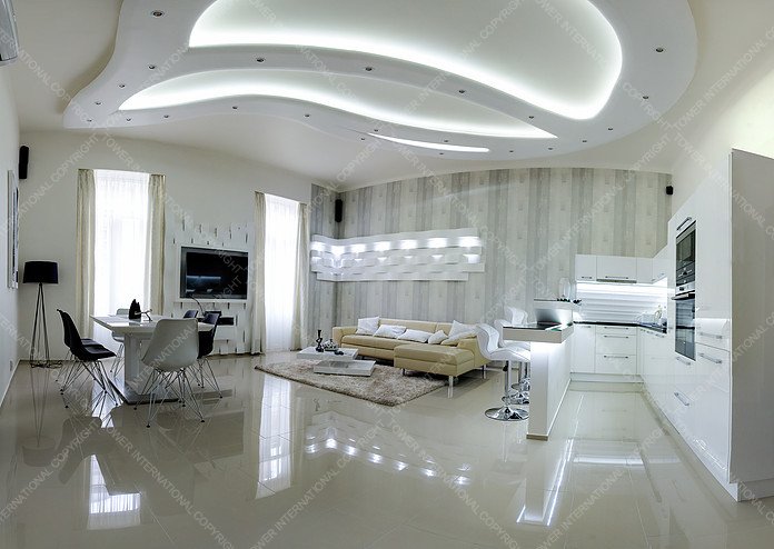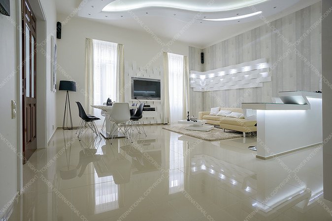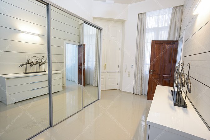 This flat is located in a beautiful old block of flats in Sütő Street, near the deservedly popular Fashion Street. The flat with exceptional capacities has three small balconies. It has a view of Deák Ferenc Sqare and the pedestrian precinct of Sütő Street. The flat has two living rooms and two bathrooms, one with a Finn sauna. We used the well-tried technologies; the floor and the wall heating are essential in the modern heating-technology. The floor-covers are from Spain, just like the bathroom covers. The plaster ceiling light makes the living room more unique. The form of the stretched pebble has a breathtaking effect. All of these are made by hands during long working hours. There are other special forms in the living room: horizontal and vertical waves of plaster. In the kitchen there is a granite working desk and a granite sink. The kitchen was especially designed here, it gives the feeling of luxury with its high-light acrylic front panel and built-in equipment with special handles. The flat has high-light maple doors everywhere, which were especially designed here. There are motor-driven shutters and soundproof windows to provide a carefree rest. Among the furniture, there are ID Design, Kare Design, Alf Italia, Bo Concept high quality design pieces and other accessories. The flat is ideal for all ages, who like the special atmosphere of downtown blocks and the big city life.