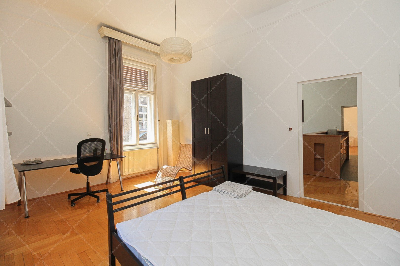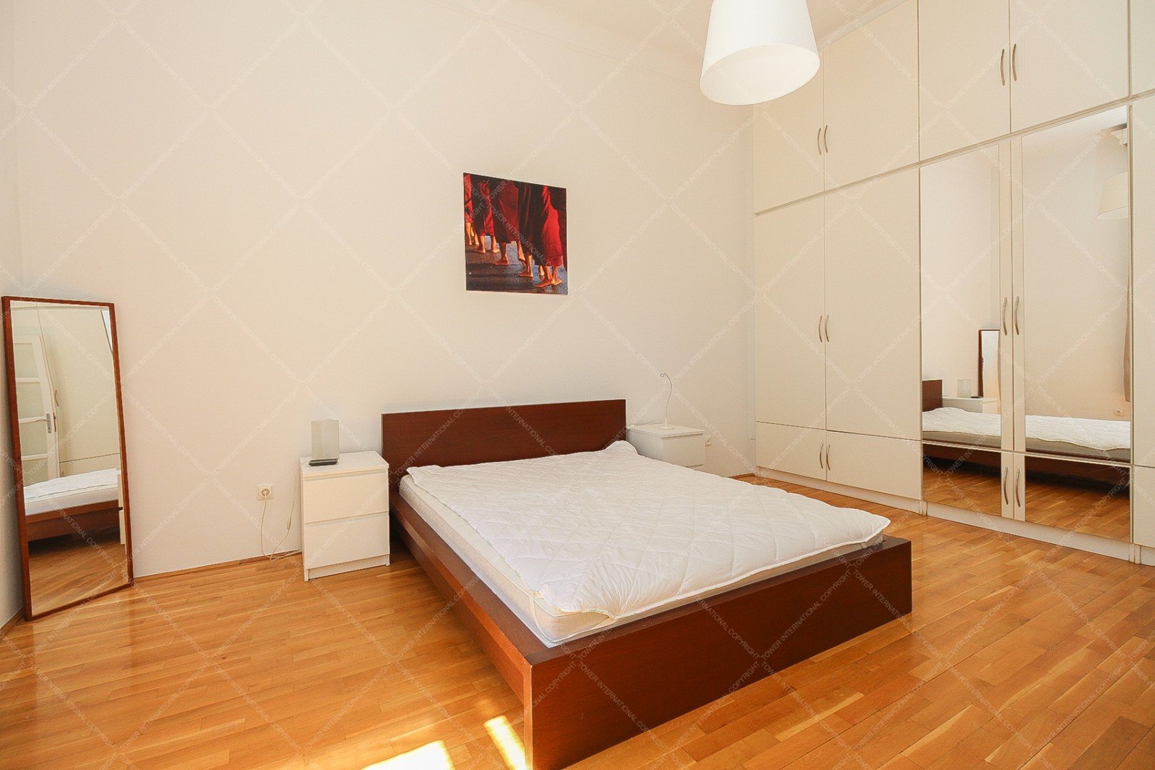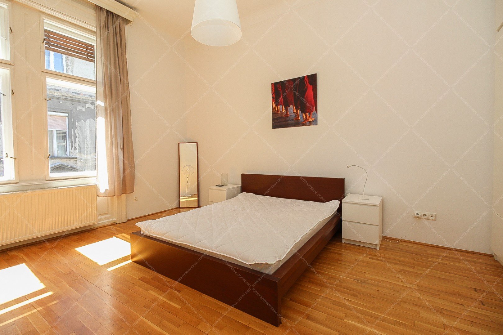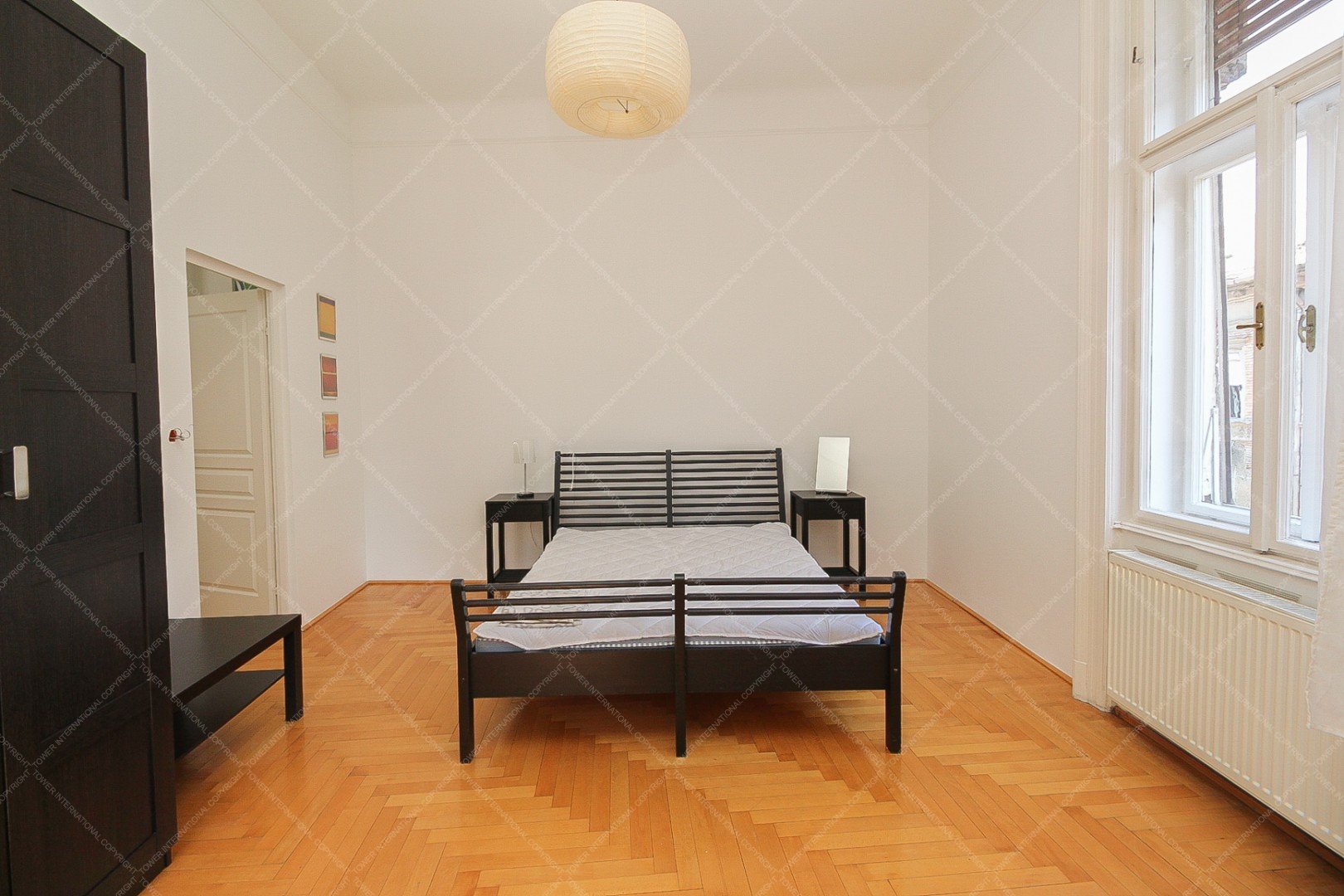 We offer a 93 sqm furnished apartment in district 6. in Jókai utca. It is situated in a classical building on the 3rd floor. The windows are facing the street. The apartment is newly renovated. It consists of a living room with open plan kitchen, 2 bedrooms, 1 bathroom and toilet. Common cost is 19700 Ft/month. Only long term rent!