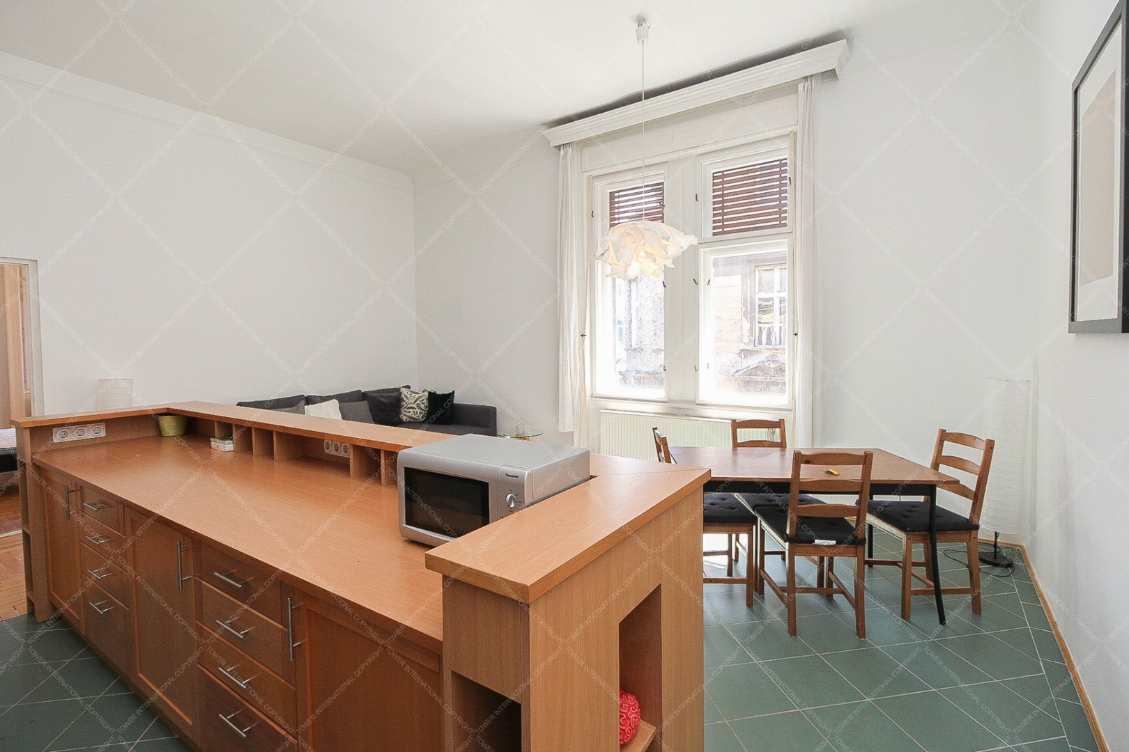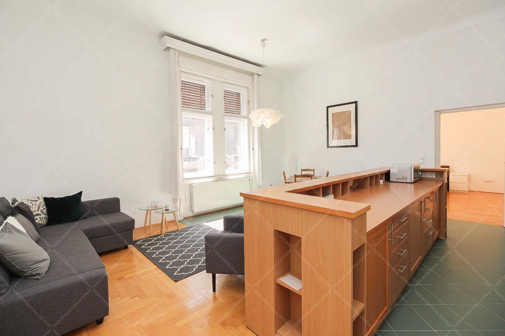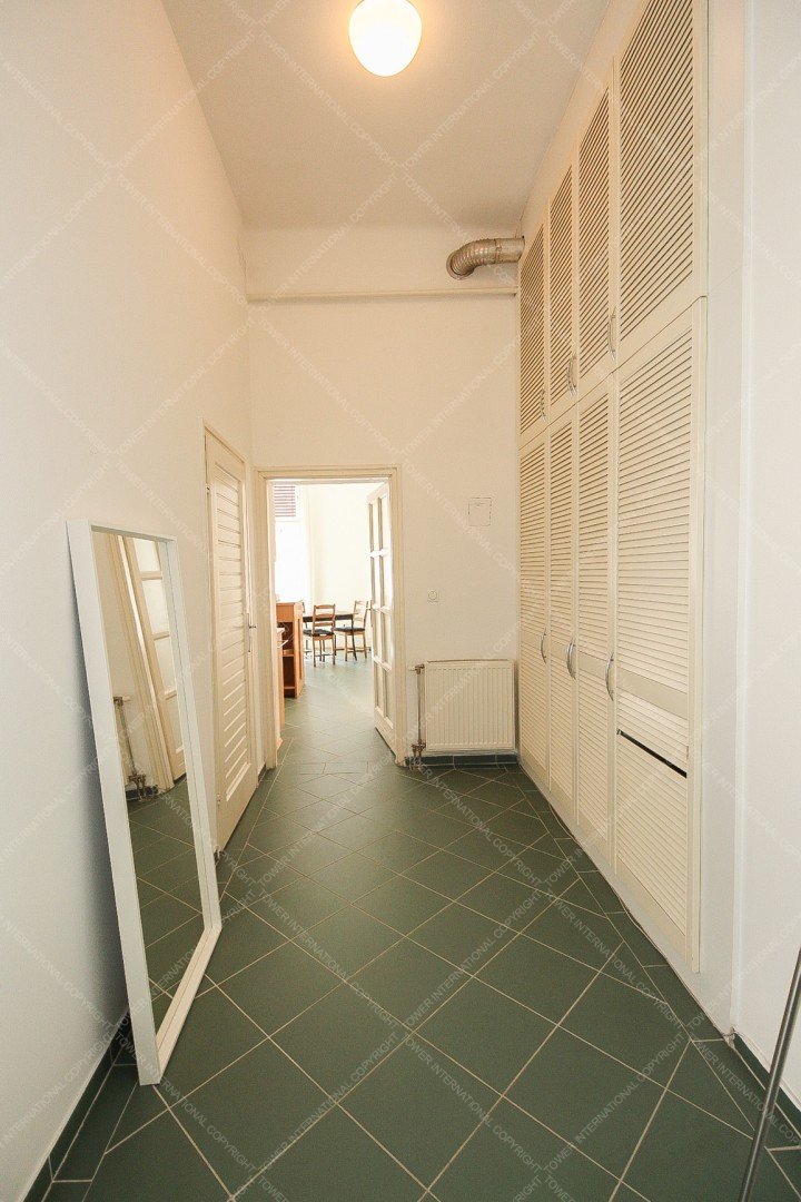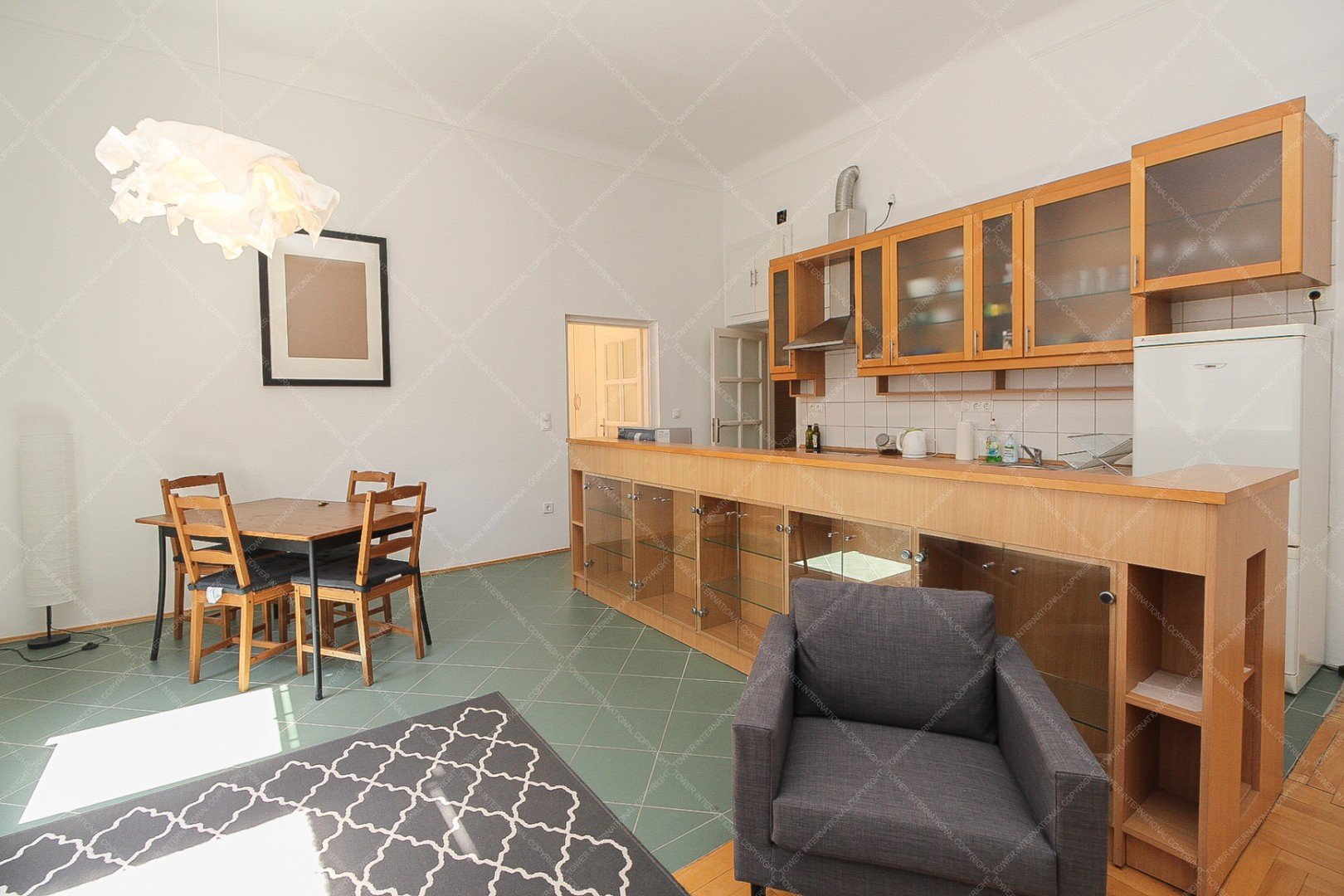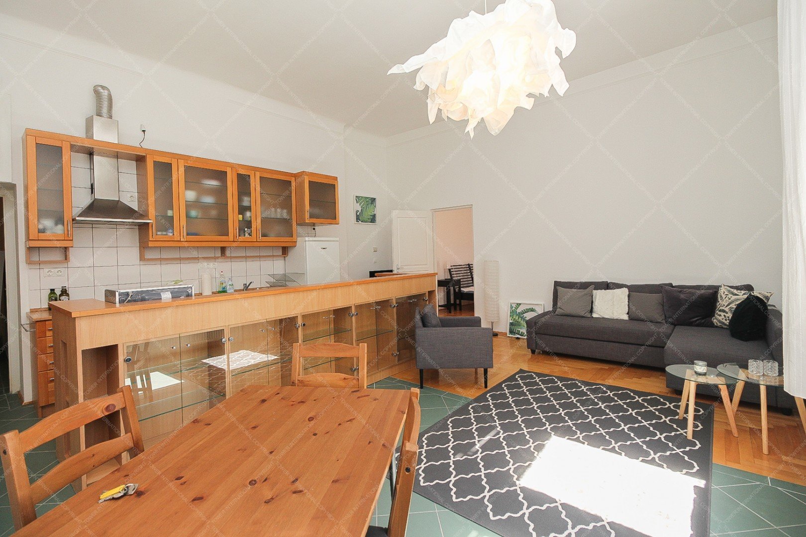 We offer a 93 sqm furnished apartment in district 6. in Jókai utca. It is situated in a classical building on the 3rd floor. The windows are facing the street. The apartment is newly renovated. It consists of a living room with open plan kitchen, 2 bedrooms, 1 bathroom and toilet. Common cost is 19700 Ft/month. Only long term rent!