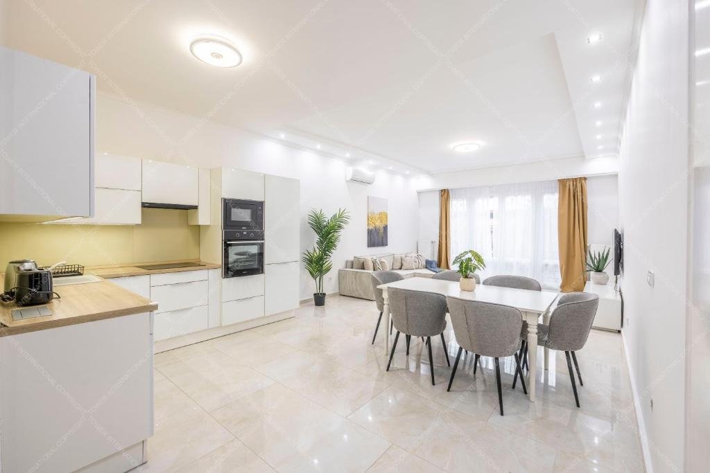 The apartment enjoys a prime downtown location, with public transport connections, shops, restaurants, and cafés just a short walk away.