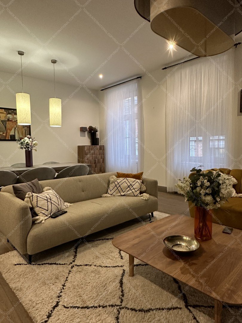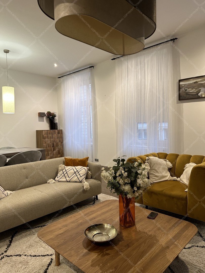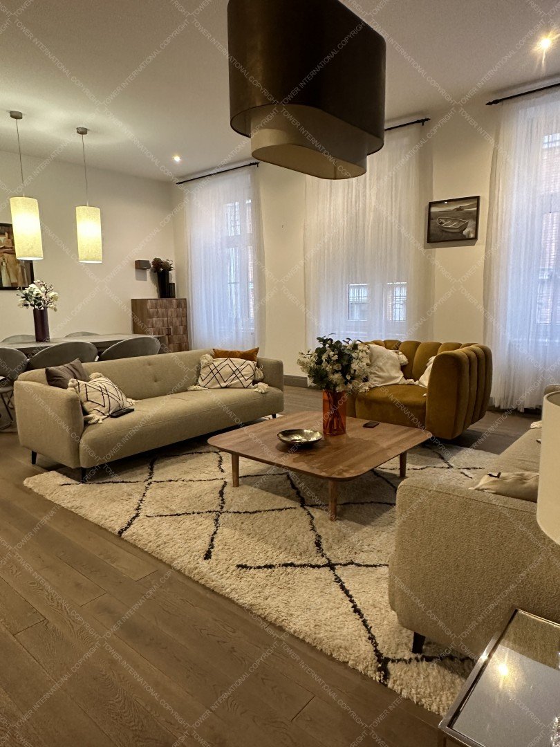 High standard apartment is for rent in the heart of Budapest. The flat is located on the 3rd floor in one of the most beautiful historical buildings that has been fully renovated in 2010. The apartment has been completely designed and renovated using only high-quality materials and accessories. The 120 sqm, air conditioned flat has been equipped with 2 bedrooms, and 2 bathrooms.