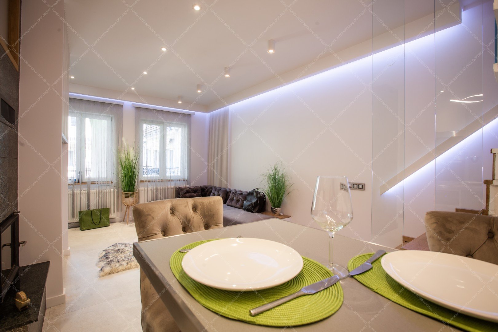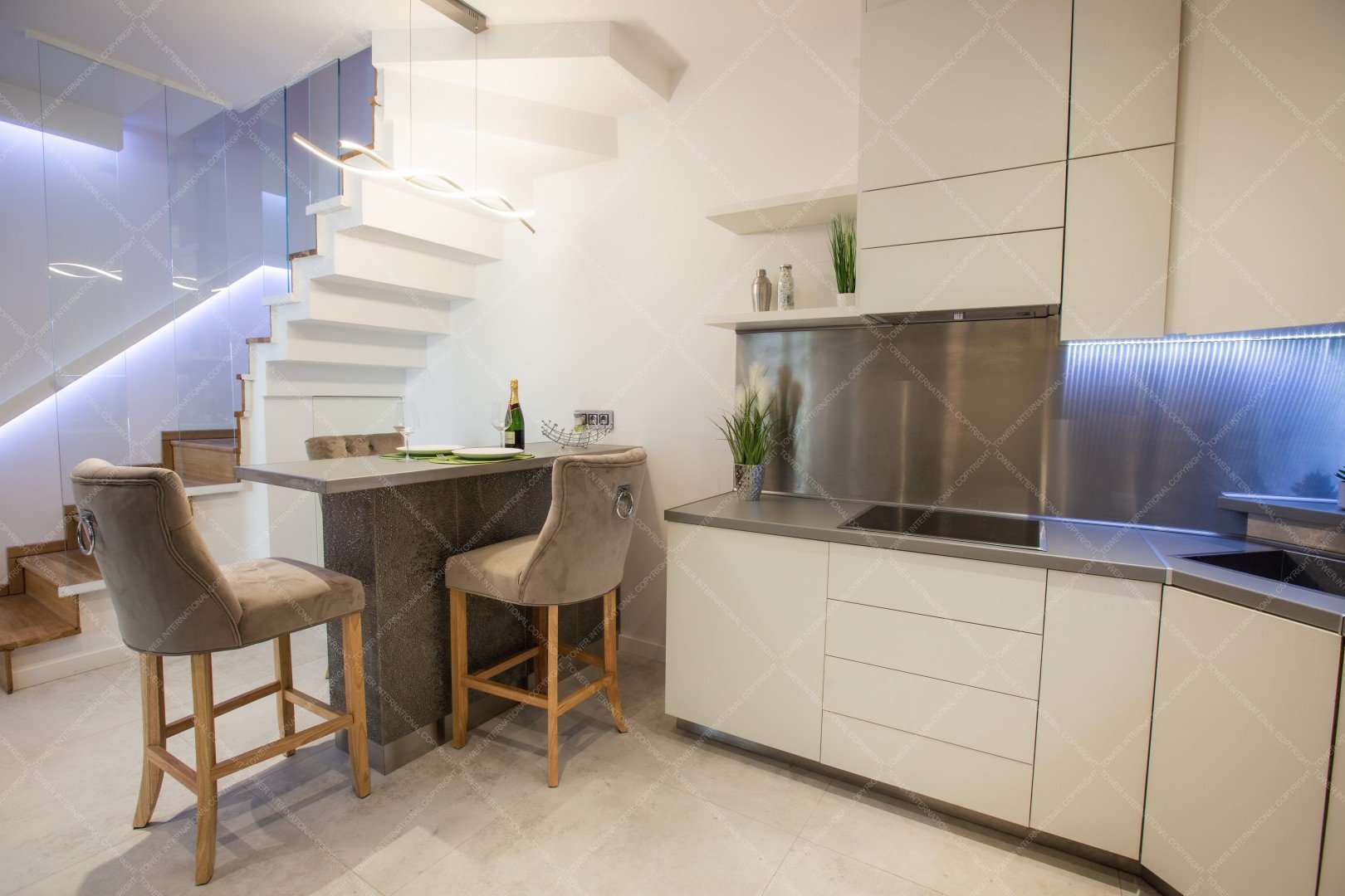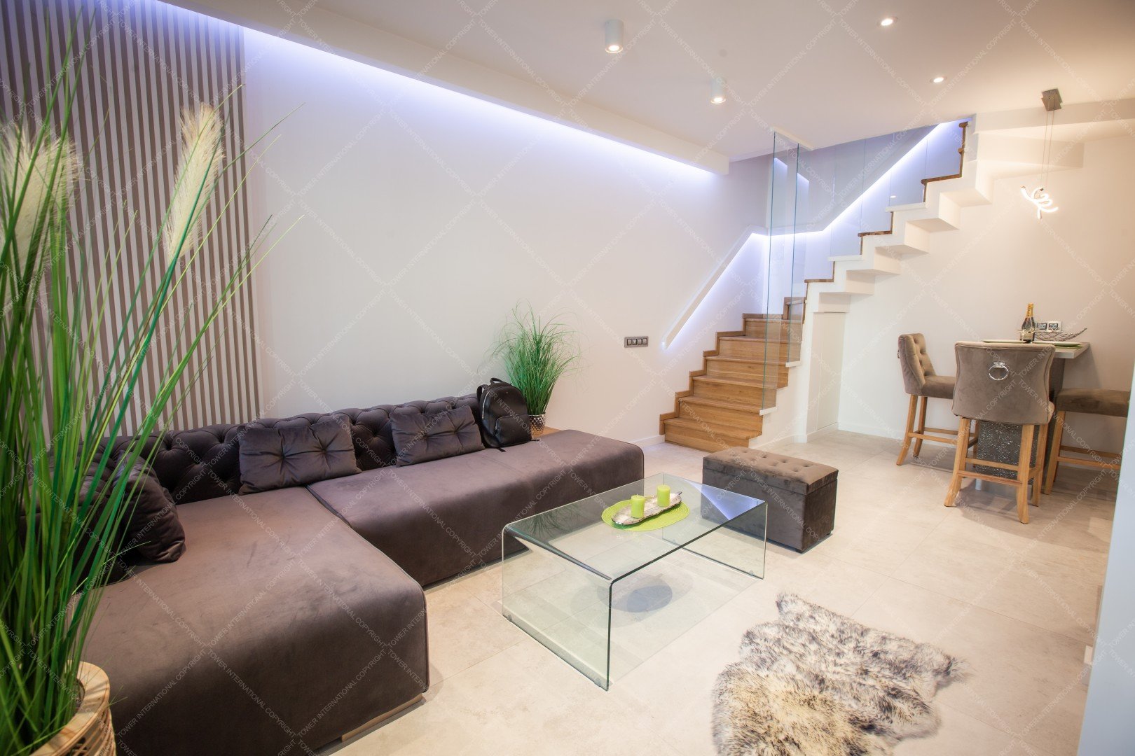 The air-conditioned property is a triplex apartment with quality furniture.