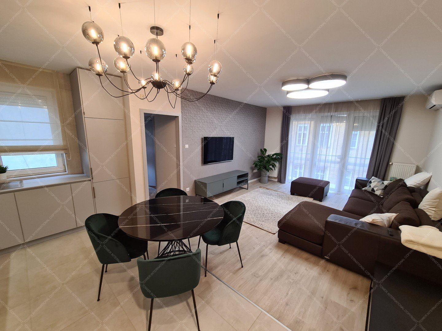 We offer a 70 sqm furnished apartment in district 6, in Weiner Leó utca. It is situated in a newly built building on the 3rd floor. The windows face the courtyard. It consists of a living room with open plan kitchen, 2 bedrooms, 1 bathroom, toilet and a balcony. Common cost is 42.500 HUF includes heating and hot water fee. Available from April for long term (min. 1 year).