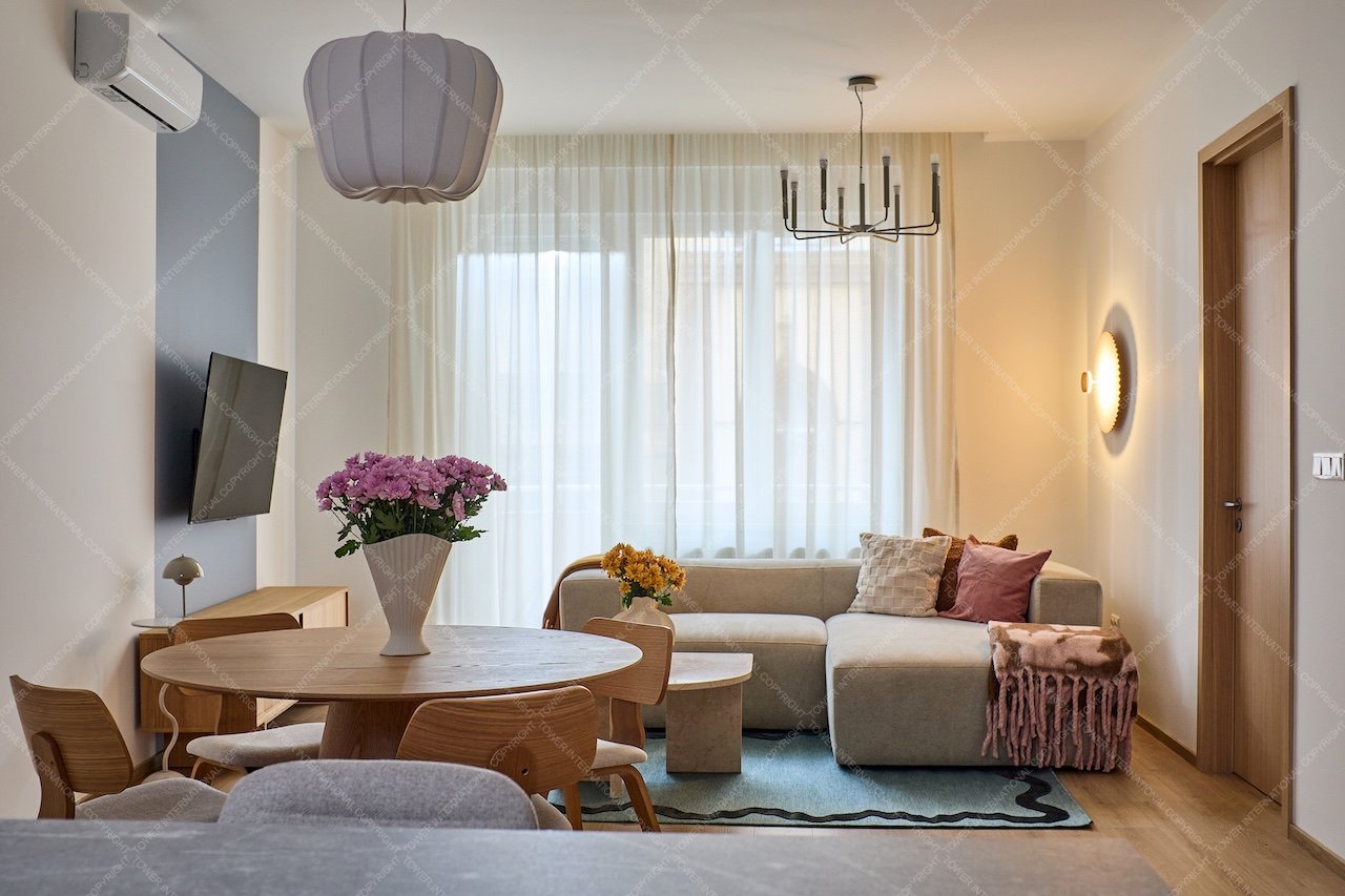 Fully furnished, designed with premium-quality materials and furniture, equipped with air conditioning and a washer-dryer combo.