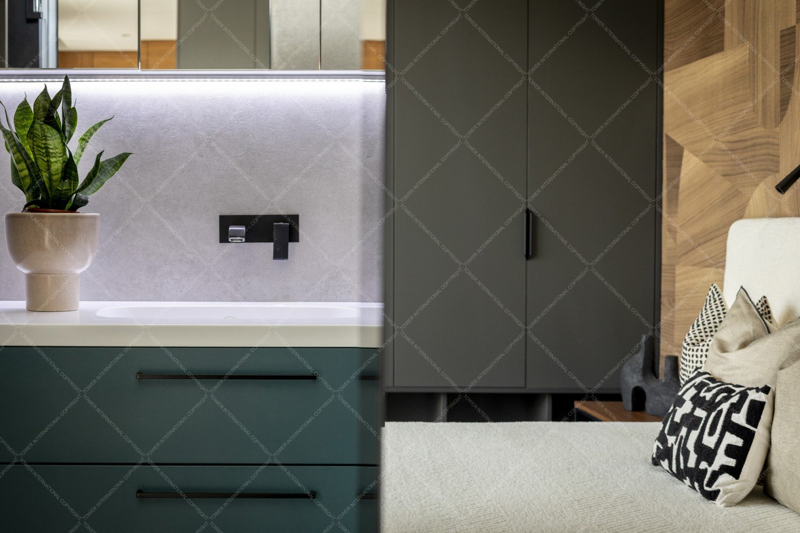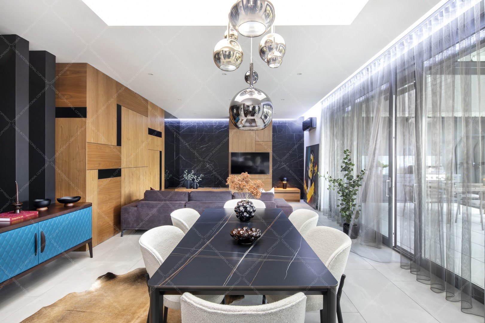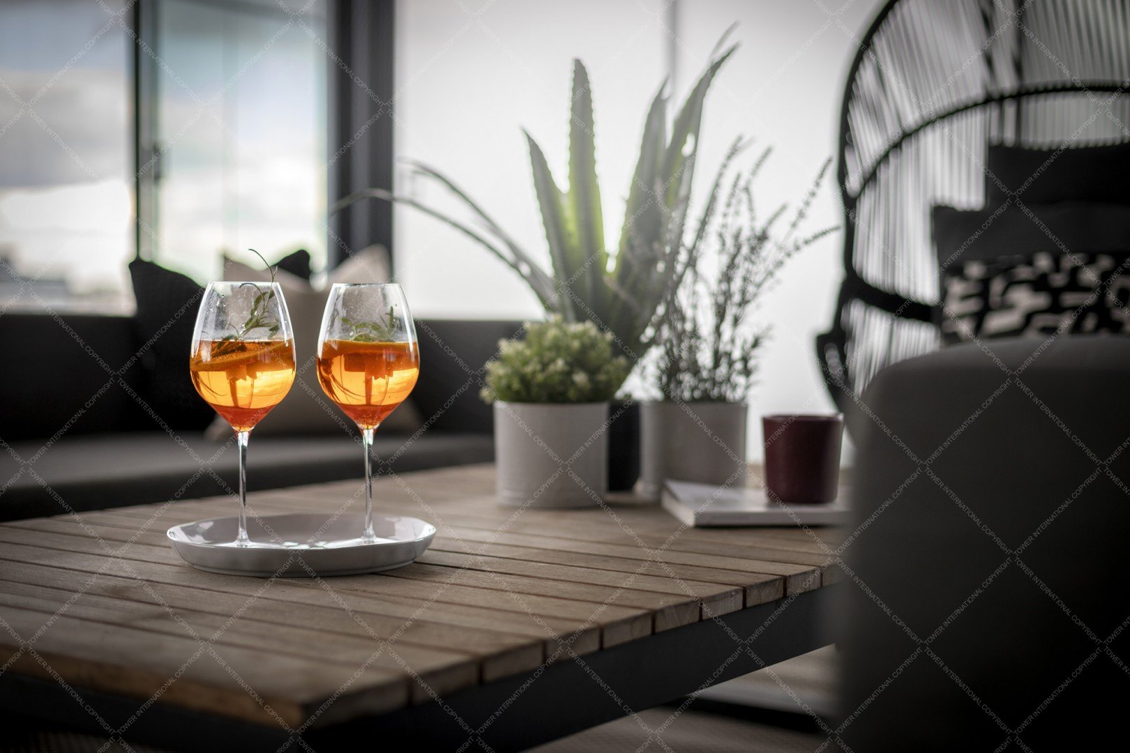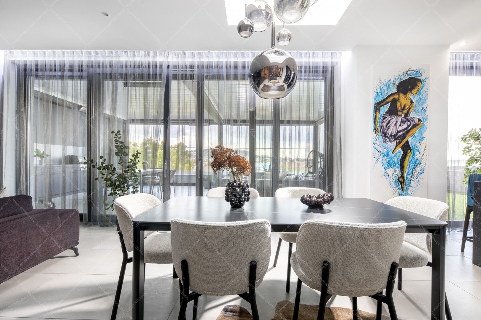 The 107 m², air-conditioned, tastefully designed and furnished apartment has with a living room, 2 bedrooms, two bathrooms, a guest toilet, a 160 sqm terrace, and two large parking spaces in the garage.