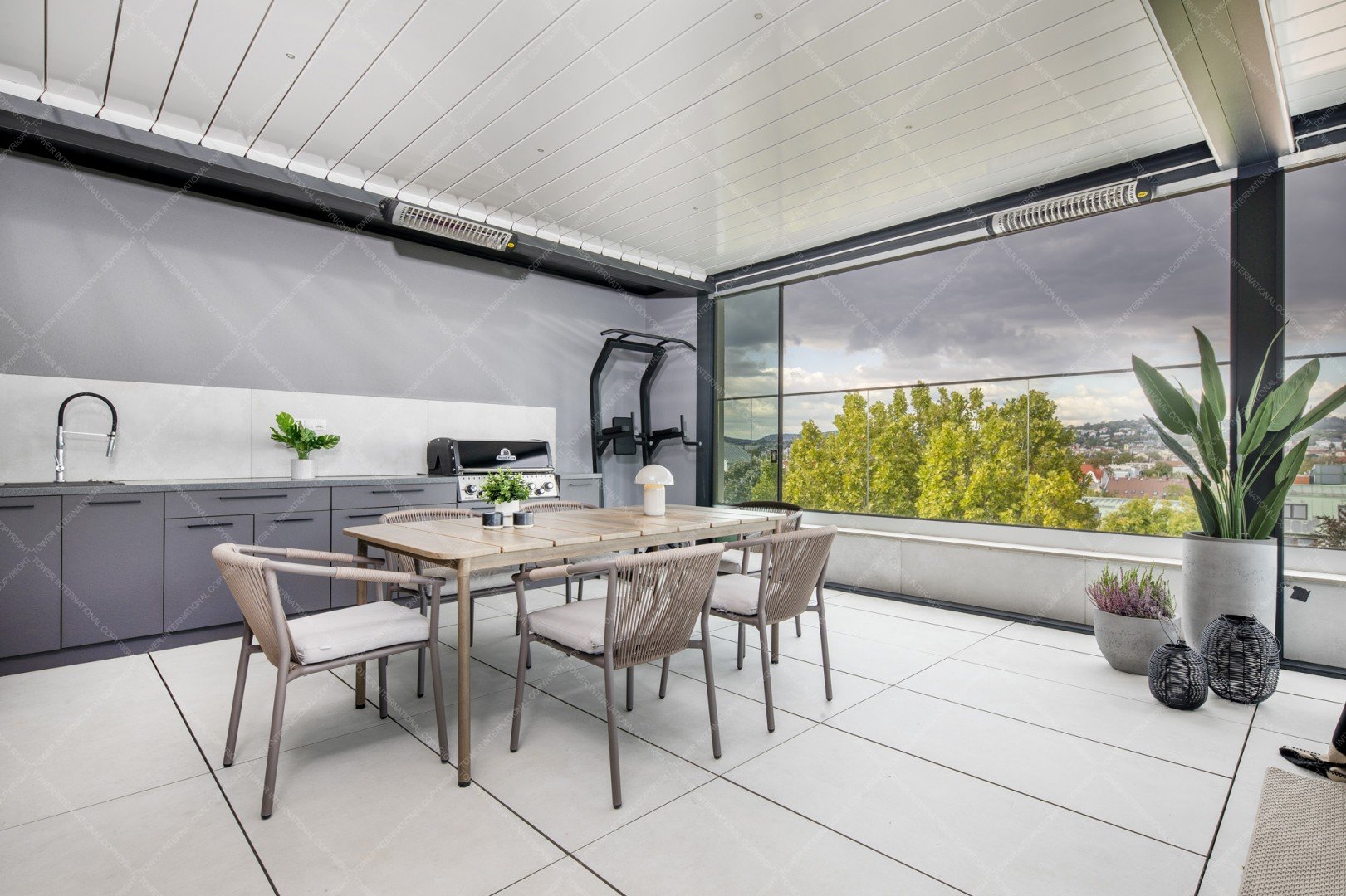We are offering for rent an extremely exclusive property with a panoramic view and a 160 m² roof terrace in the 11th district.