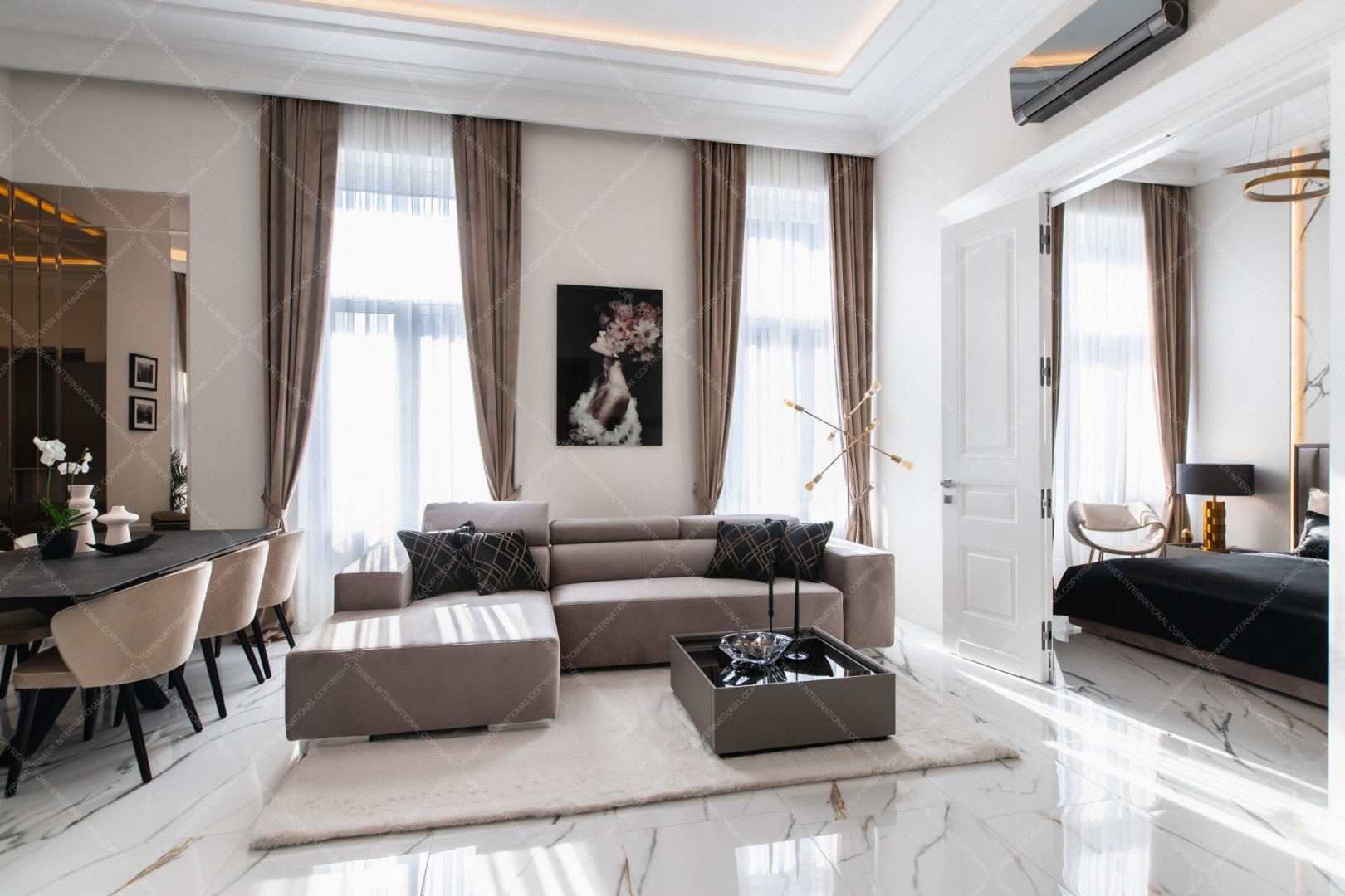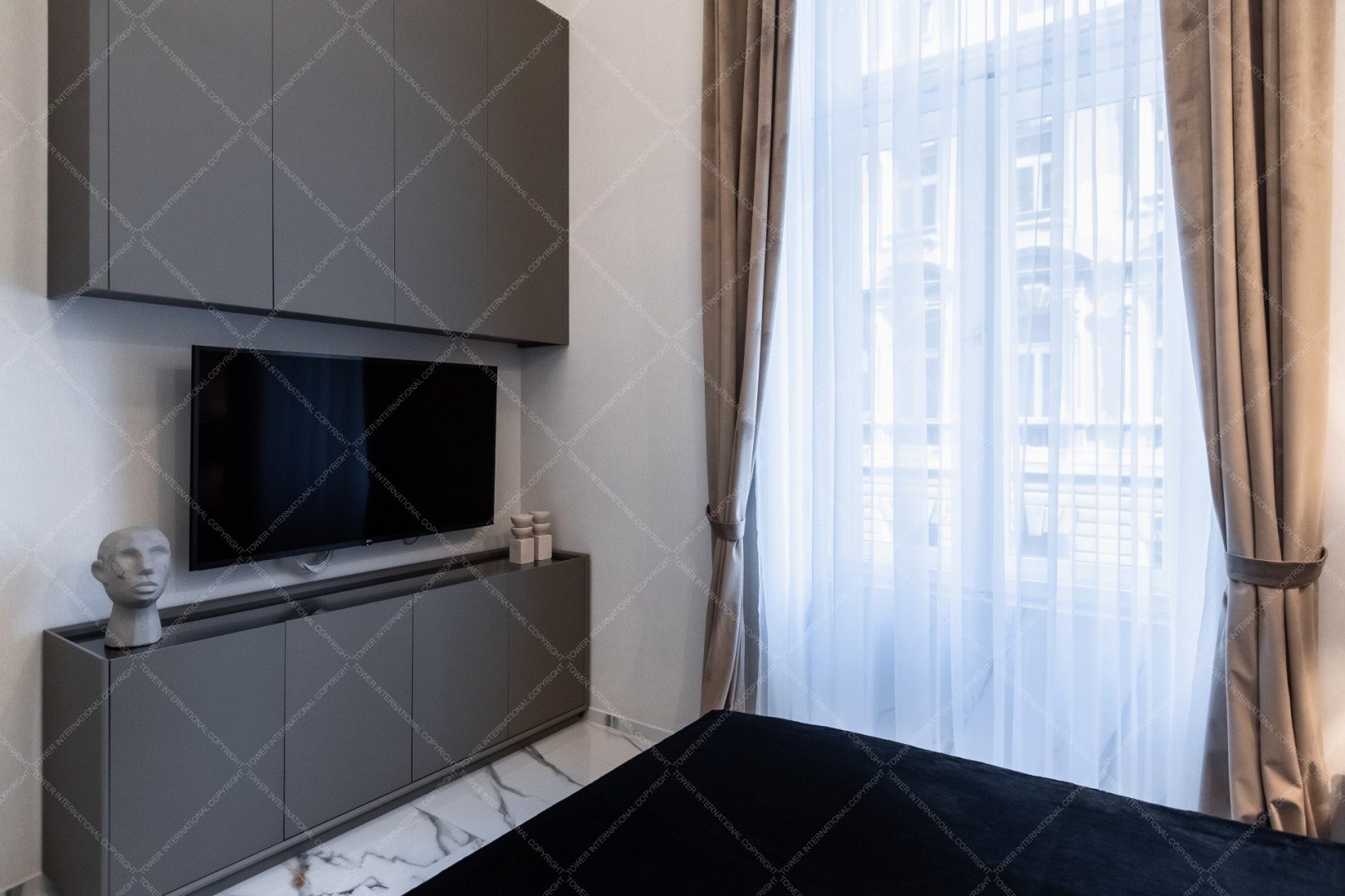 The apartment has been renovated with quality materials, Gorenje Oraito kitchen appliances, Grohe and Villeroy&Boch sanitary, Marazzi tiles, custom made and unique features including granit kitchen countertop, Onyx bar, stucco on the walls, hardwood inner doors, and the full furniture set including Kare, Bo Concept and Einholtz items. It features LED light design, A/C, smart TV system with 5.1 home entertainment, handmade decorations.