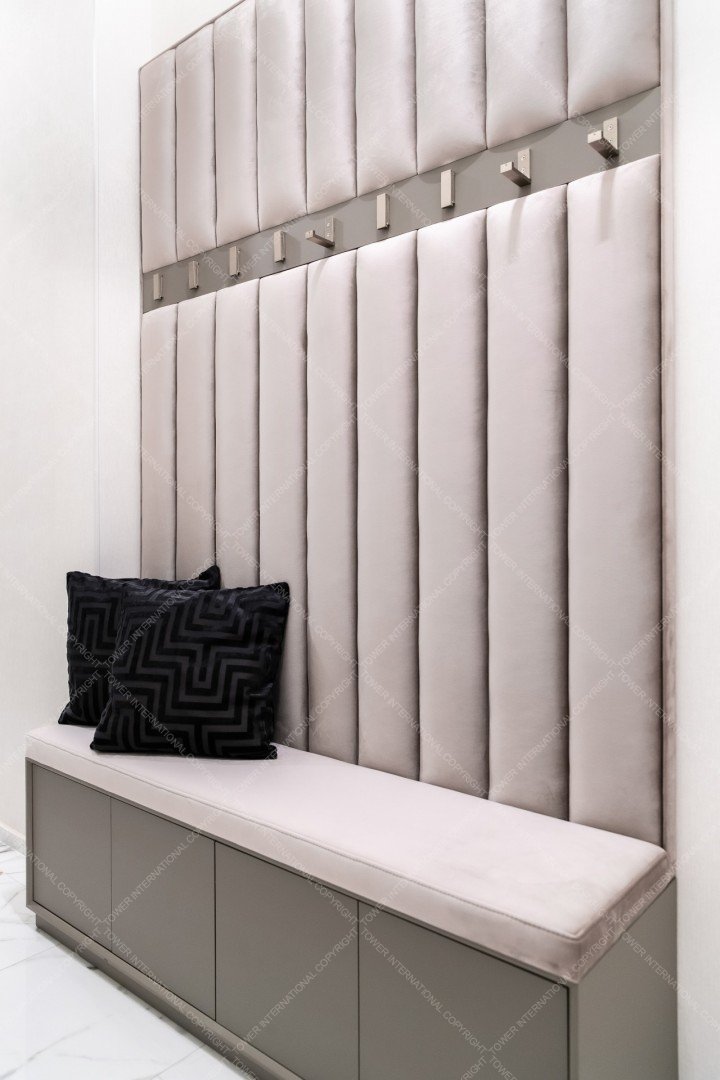 The apartment consists of a beautiful spacious living room with dining area and a kitchen, 2 bedrooms, 2 luxurious bathrooms, one with sauna, and a balcony.