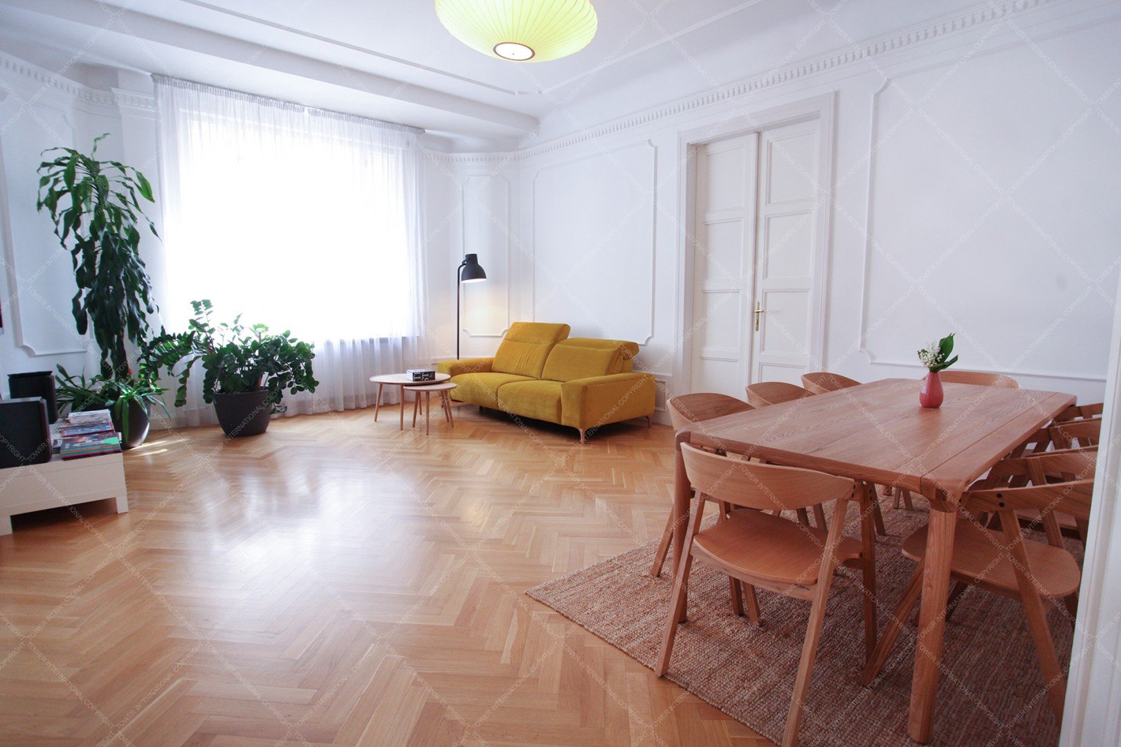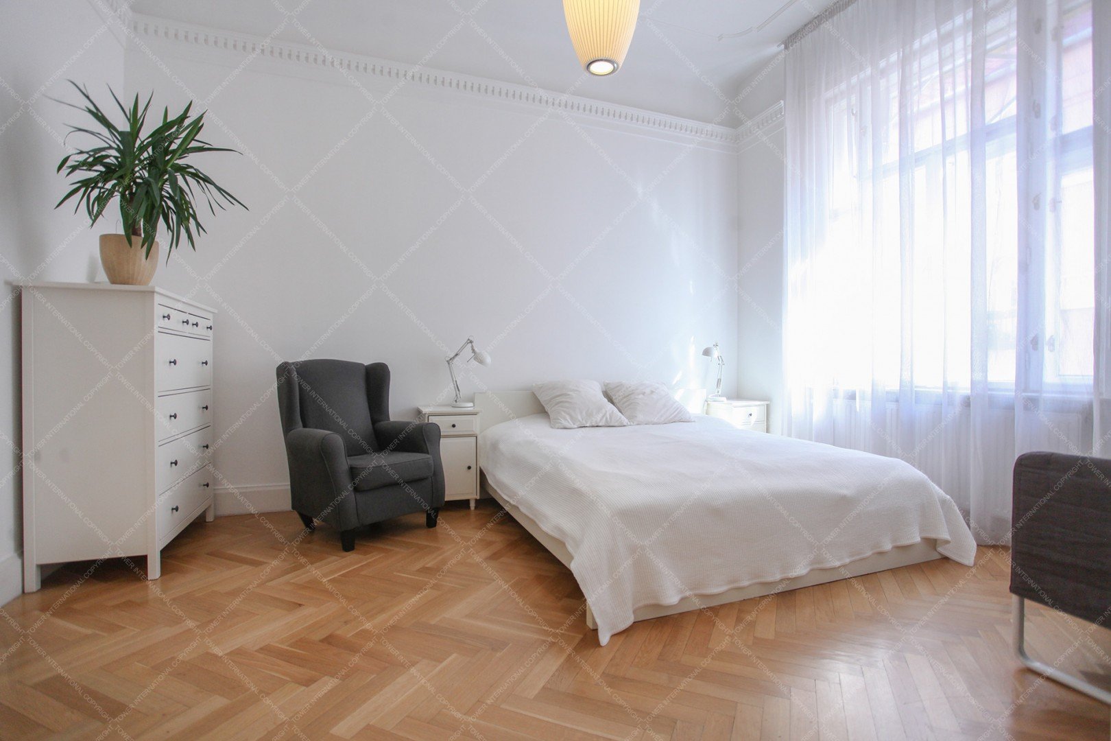 A 140 sqm, furnished luxury apartment is for rent close to the Danube and Olimpia Park. The windows are facing the river. The apartment is newly renovated. It consists of a living room, a separated kitchen, 3 bedrooms, 3 bathrooms, a guest toilet and a laundry room.