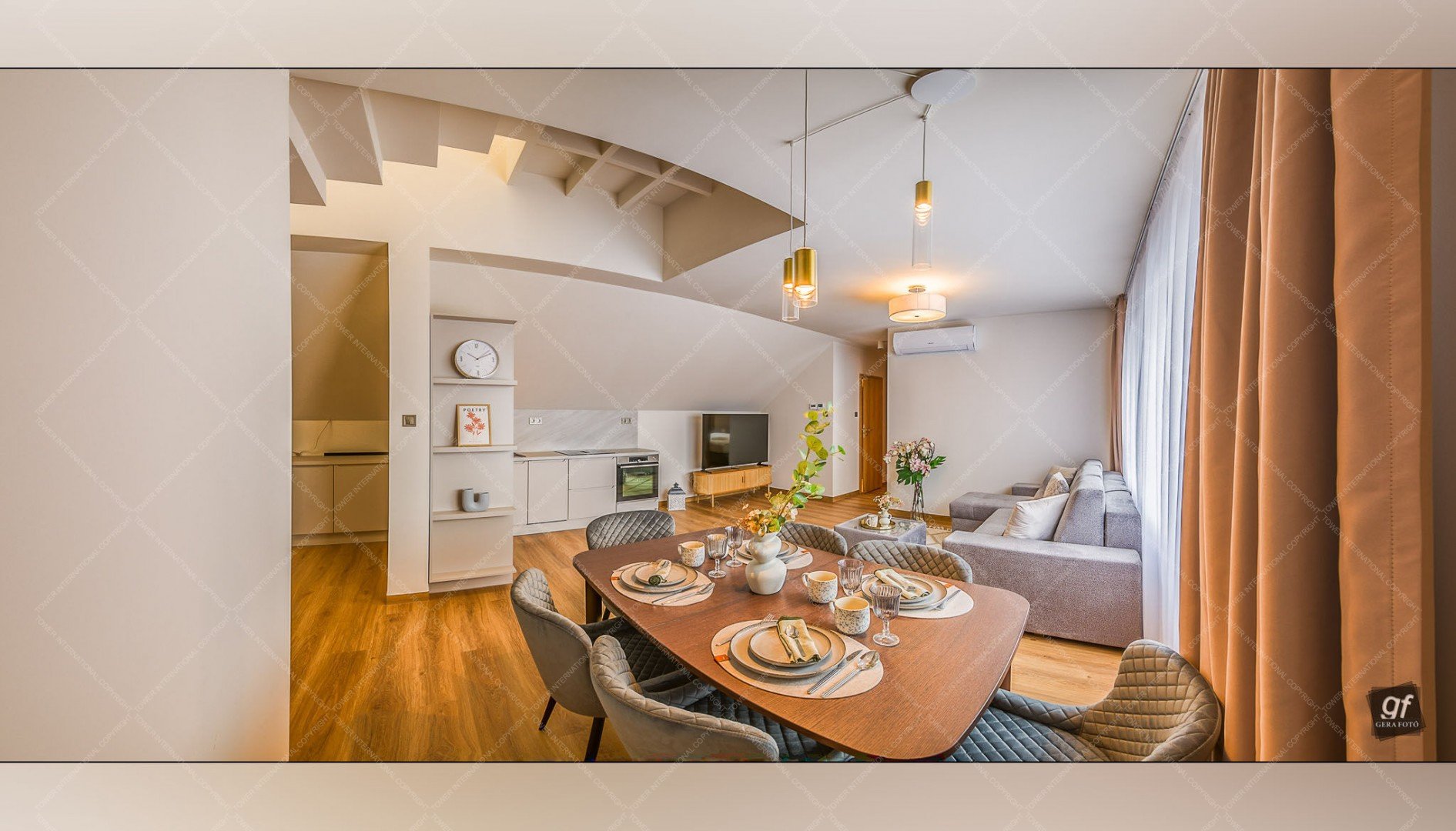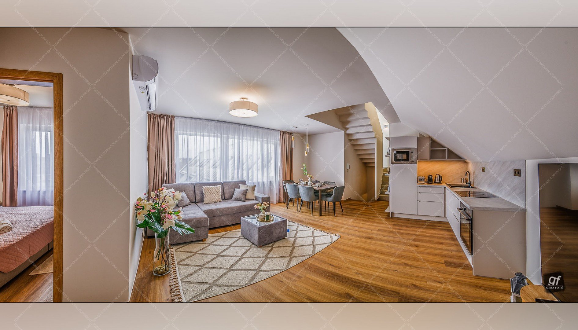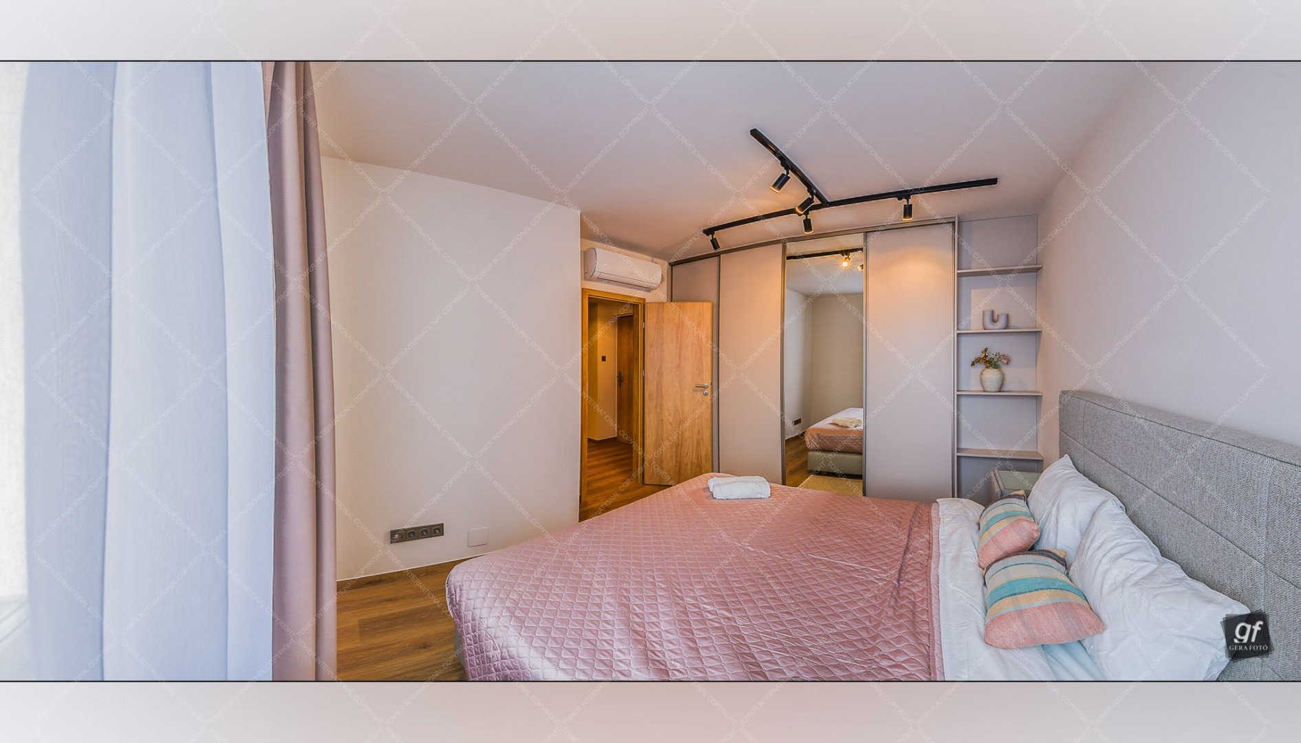 The apartment offers a bright and spacious living room and a cozy bedroom, all furnished in a clean, contemporary style. Everything is brand new and thoughtfully designed – all you need to bring is your suitcase! The apartment includes air conditioning for summer comfort and an elevator in the building for easy access.