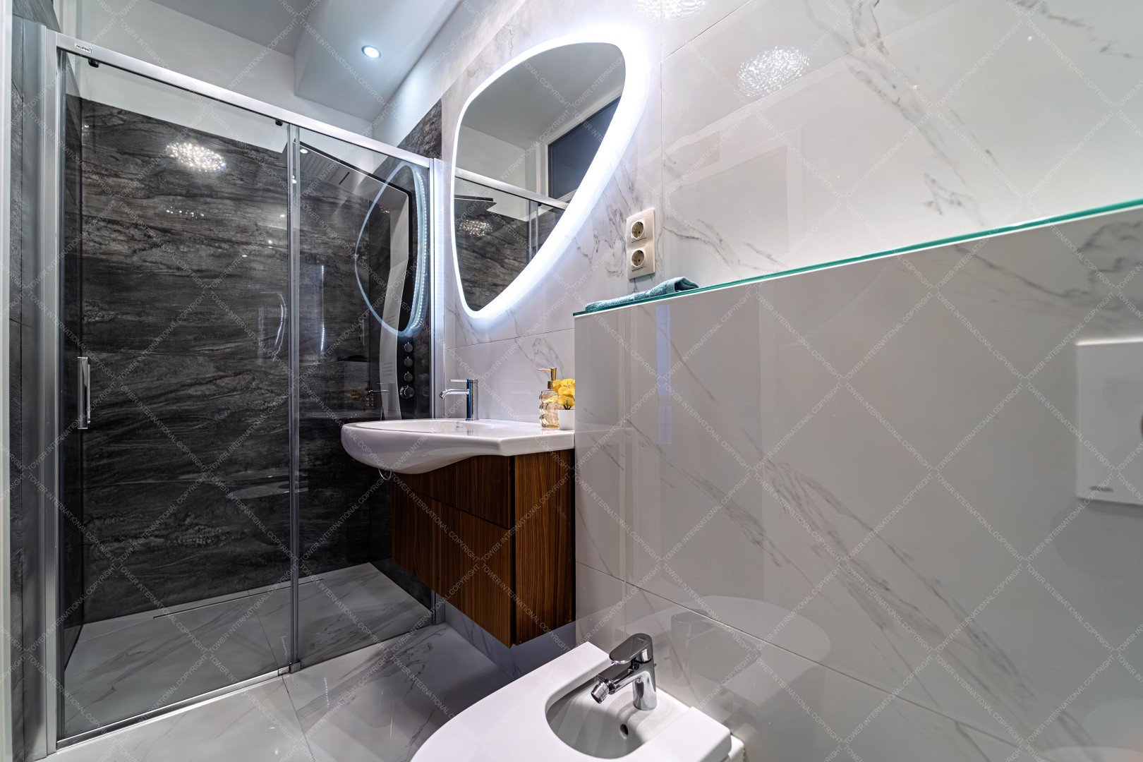 • High-quality, premium Italian marble-patterned tiles were installed.