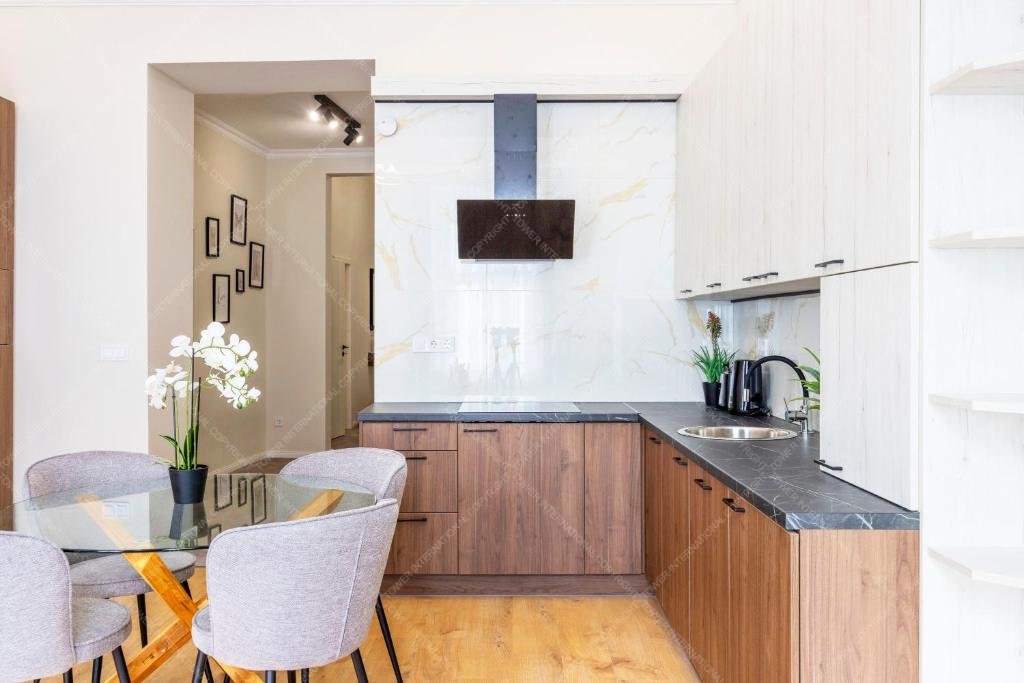 The apartment enjoys a prime downtown location, with public transport connections, shops, restaurants, and cafés just a short walk away.