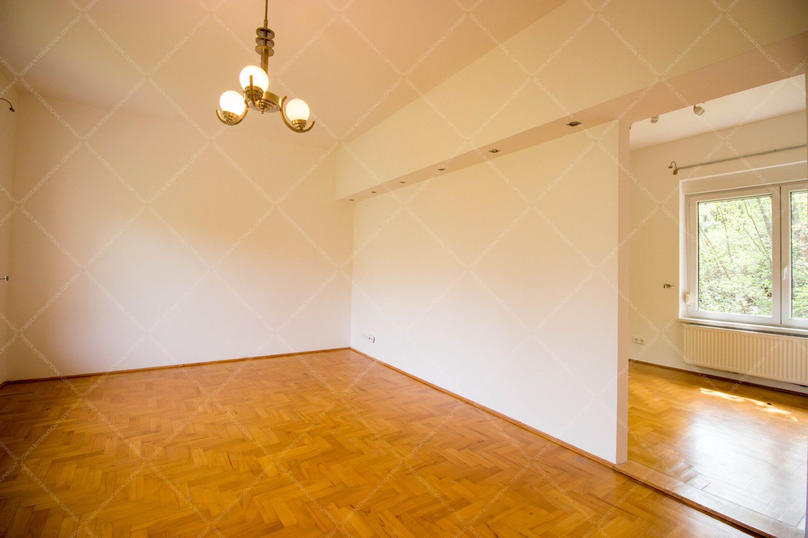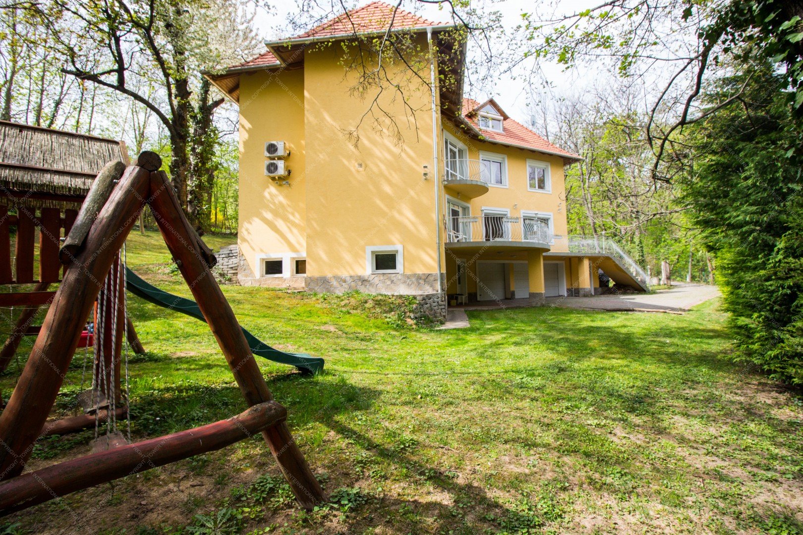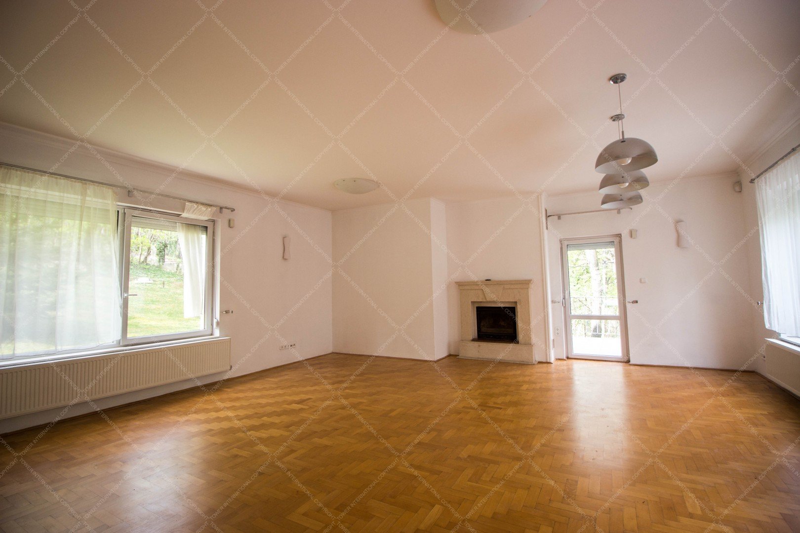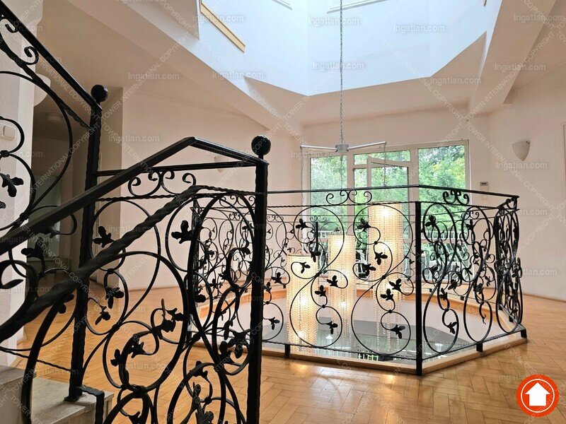 4-storey, newly built, elegant, detached house is for rent, surrounded with a green park. It consists of 5 bedrooms, a 60 m2 living room, 4 bathrooms, 2 restrooms, a study, a domestic's room (one room, a bathroom, and a kitchen), a guest apartment (2 rooms and a bathroom), and a well equipped, separated kitchen with pantry. A balcony, 2 terrace, a laundry room, a sauna, 3 garages, 4 parking spots and a spacious private garden also belong to the property. The house is ideal for big families and residences as well.