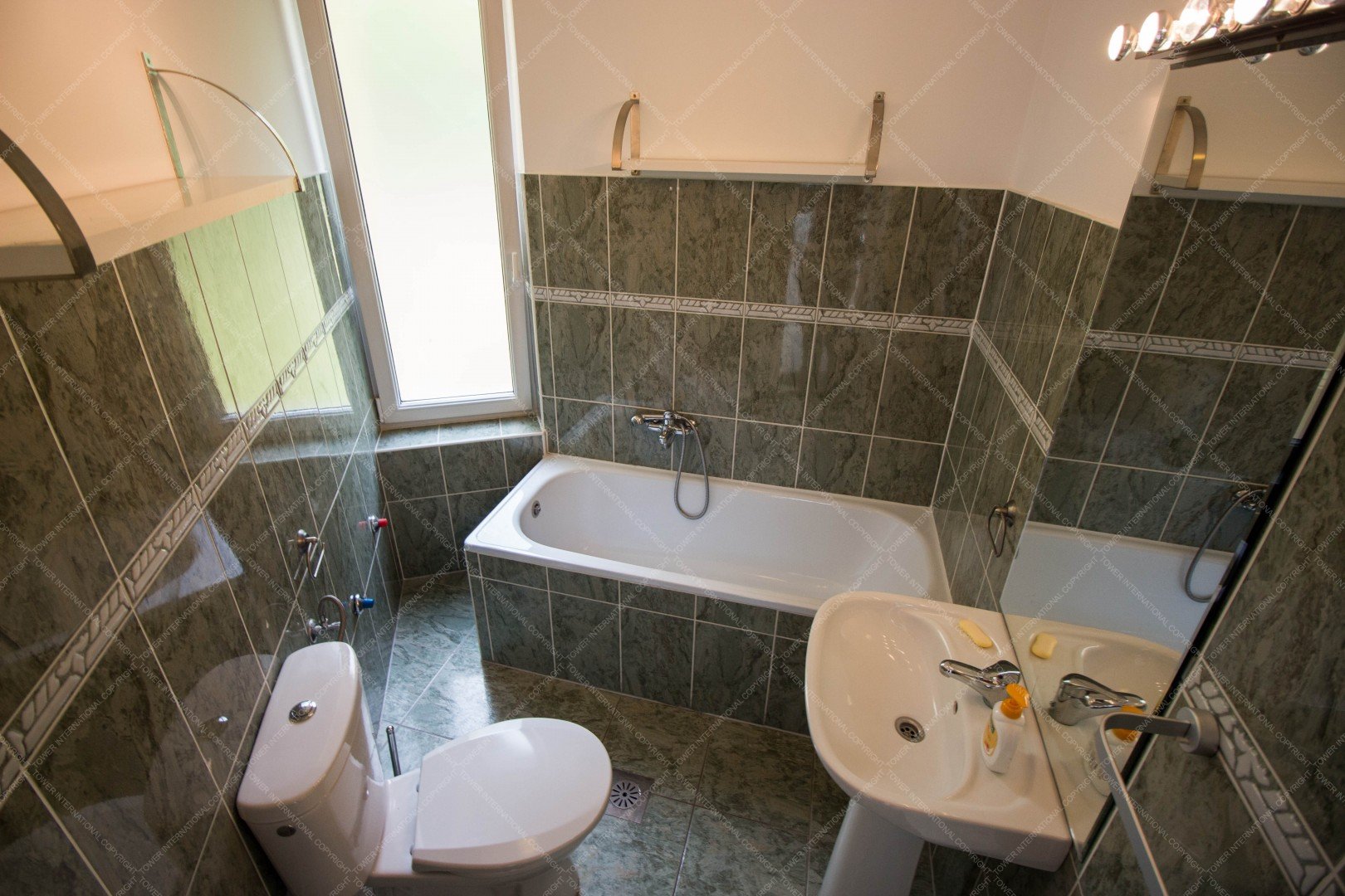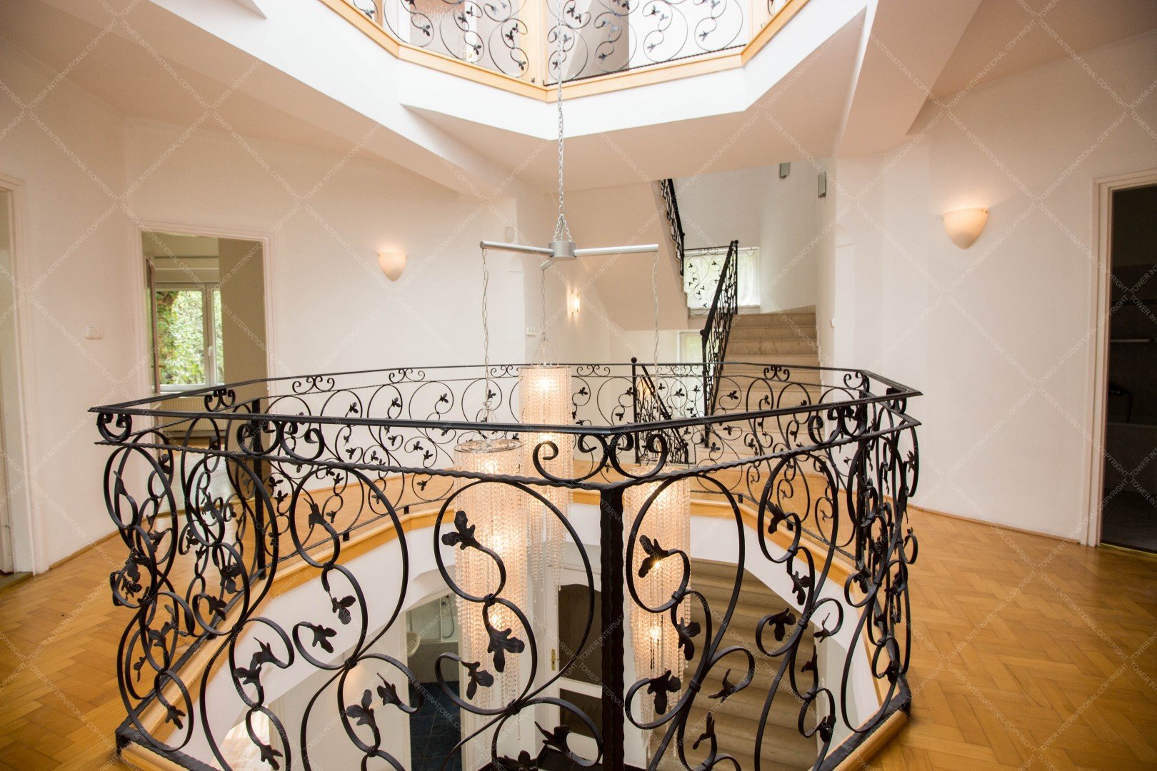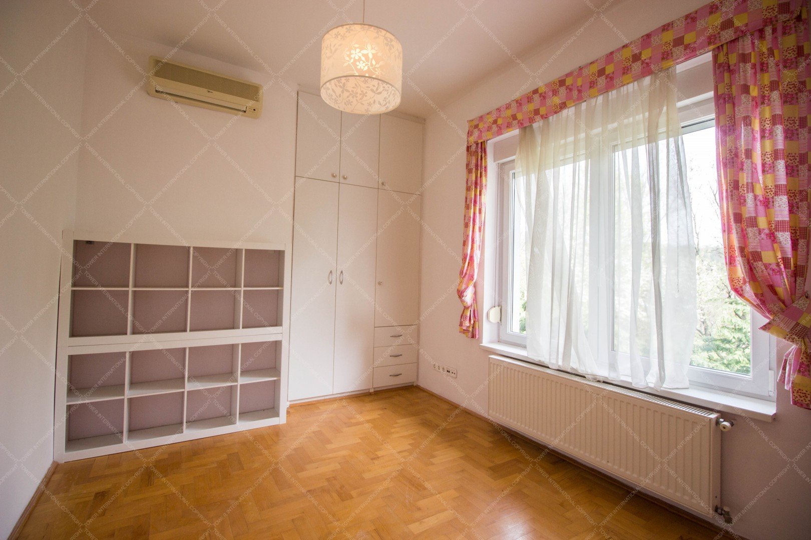4-storey, newly built, elegant, detached house is for rent, surrounded with a green park. It consists of 5 bedrooms, a 60 m2 living room, 4 bathrooms, 2 restrooms, a study, a domestic's room (one room, a bathroom, and a kitchen), a guest apartment (2 rooms and a bathroom), and a well equipped, separated kitchen with pantry. A balcony, 2 terrace, a laundry room, a sauna, 3 garages, 4 parking spots and a spacious private garden also belong to the property. The house is ideal for big families and residences as well.