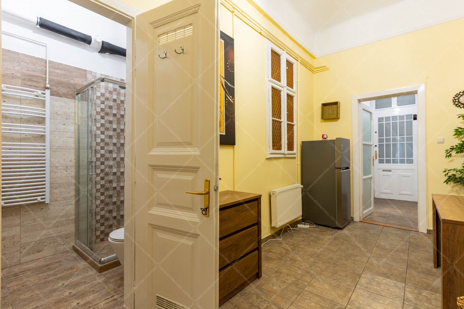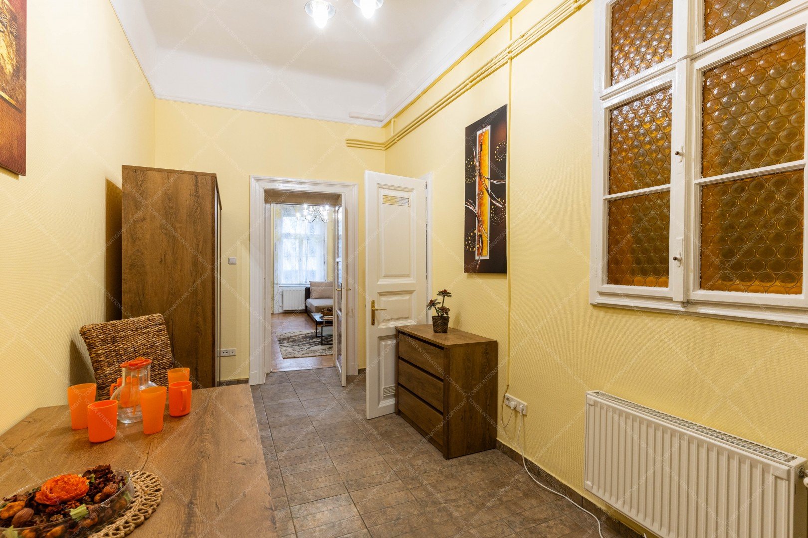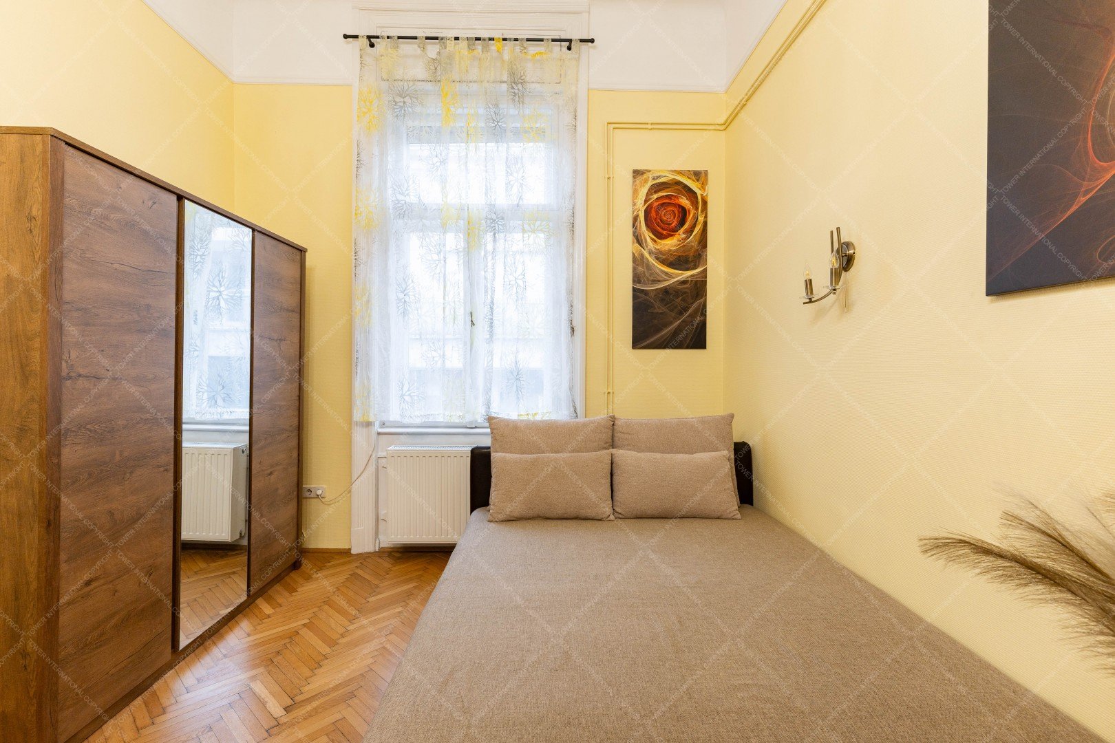 The apartment has a floor area of 48 sqm and, thanks to its practical layout, offers a spacious feel. It is an ideal choice for a single person or a couple. The property is located on the 4th floor of the building, making it bright and quieter than lower street-level apartments. The windows overlook the charming Párizsi Street, adding a special downtown atmosphere to the home.