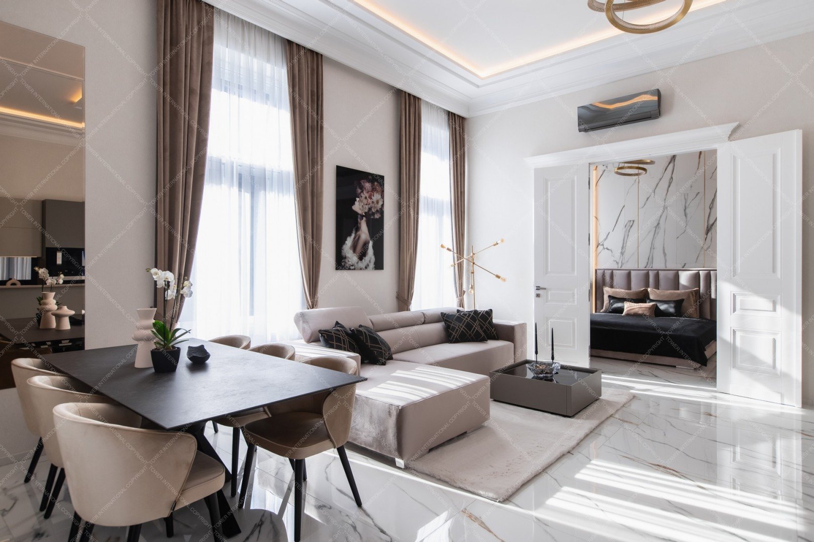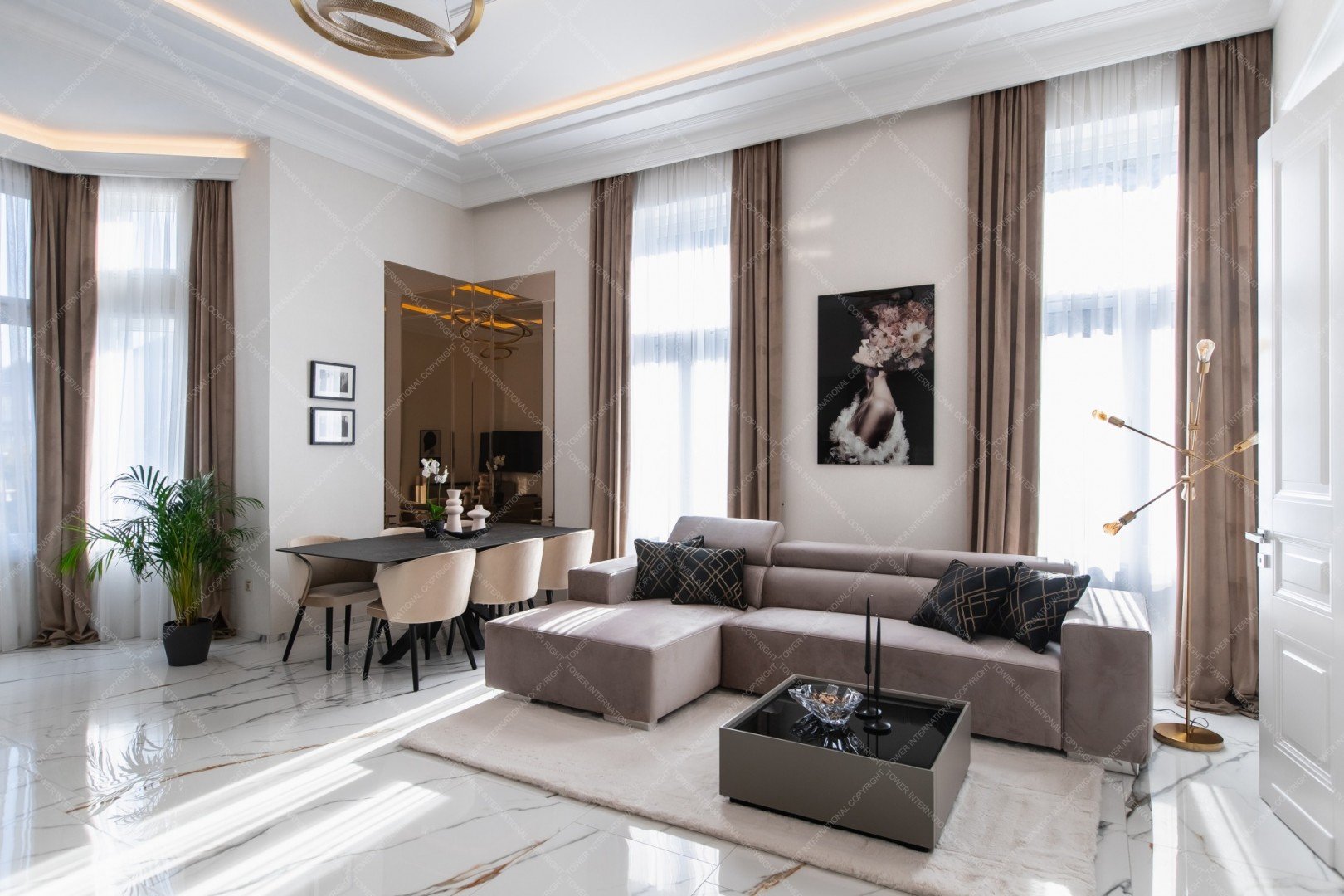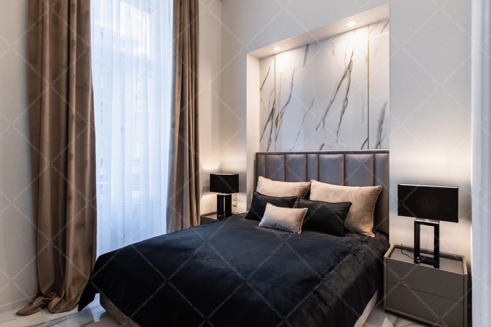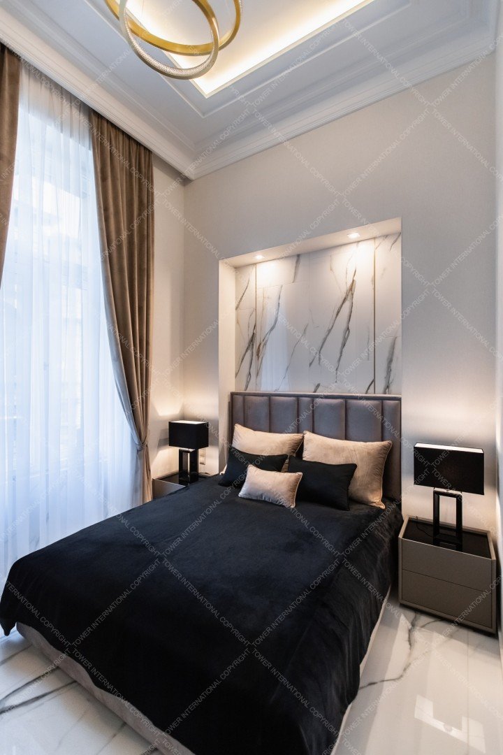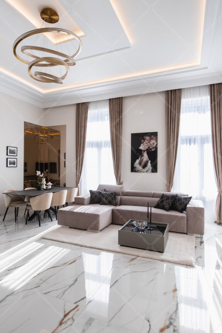 It has 2 bedrooms and 2 bathrooms. The rent is €2,500. It is located in the heart of the city, close to Margaret Island and Nyugati Railway Station, with many restaurants and shops nearby.