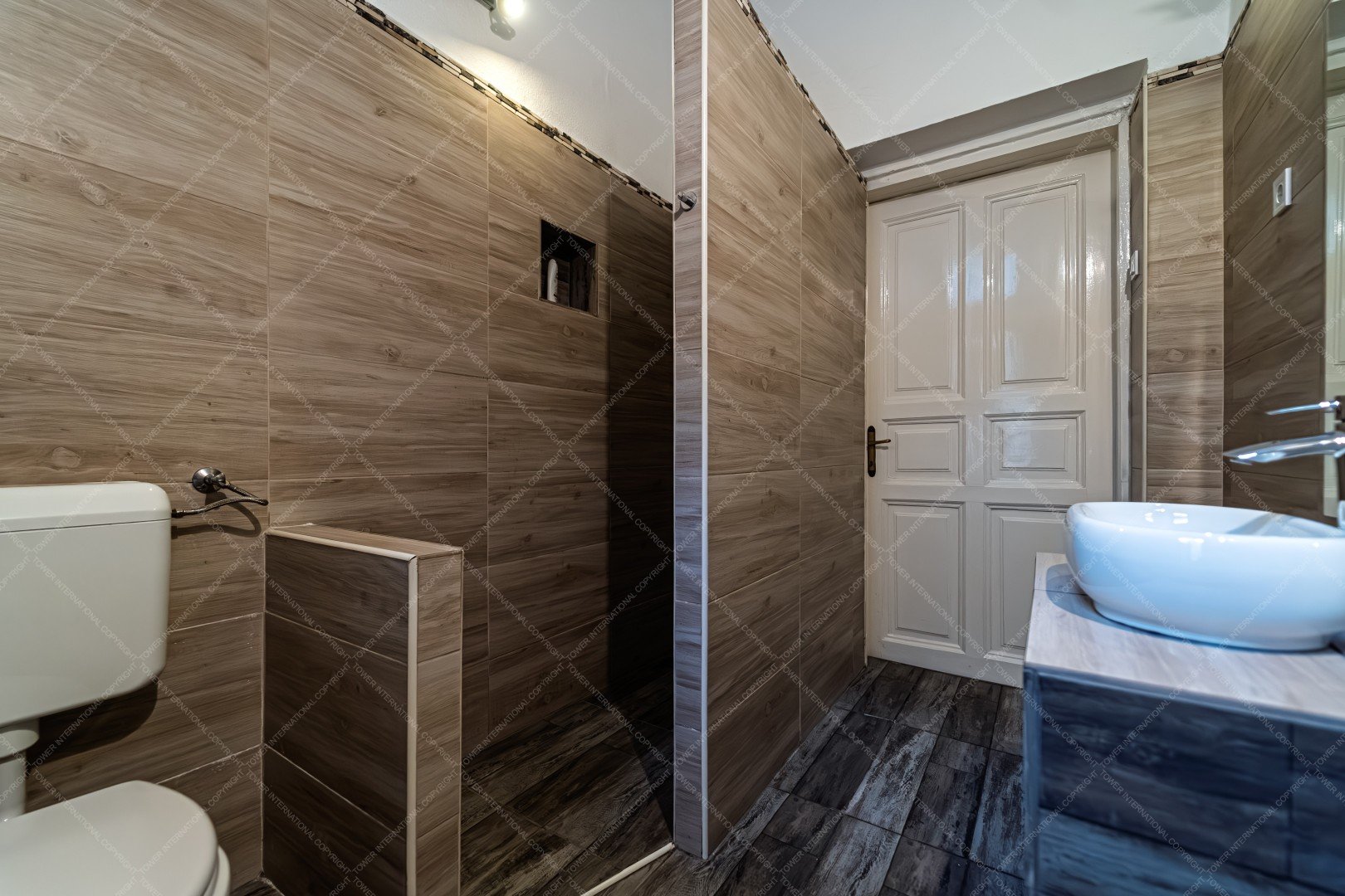 - bathroom with shower.