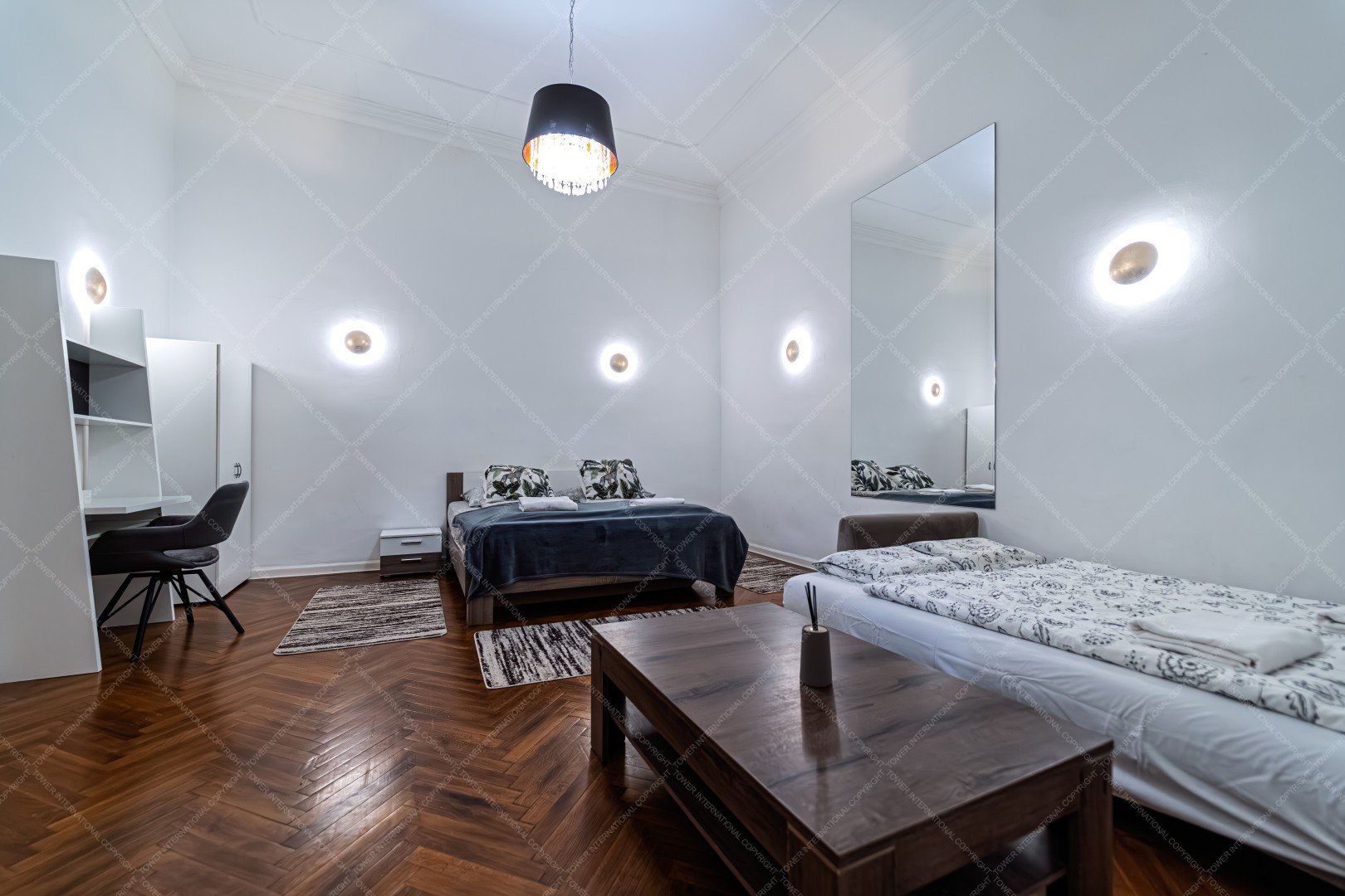 - two spacious, bright rooms with high ceilings (easily convertible into two separate rooms),