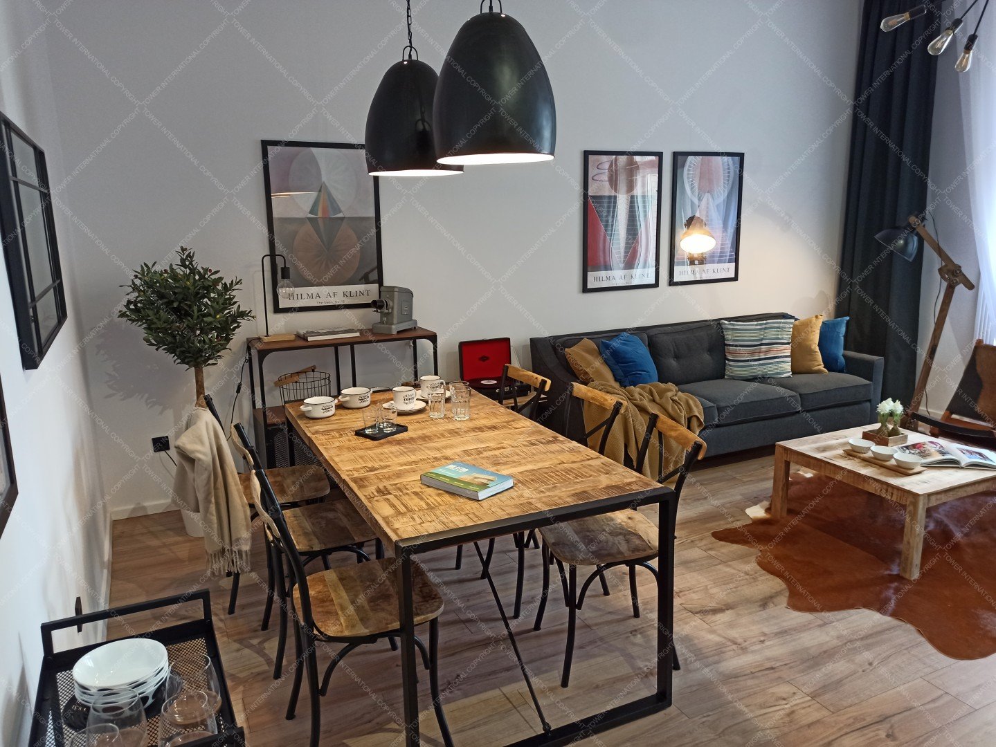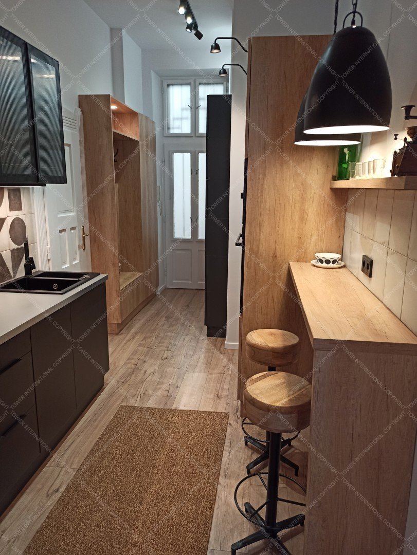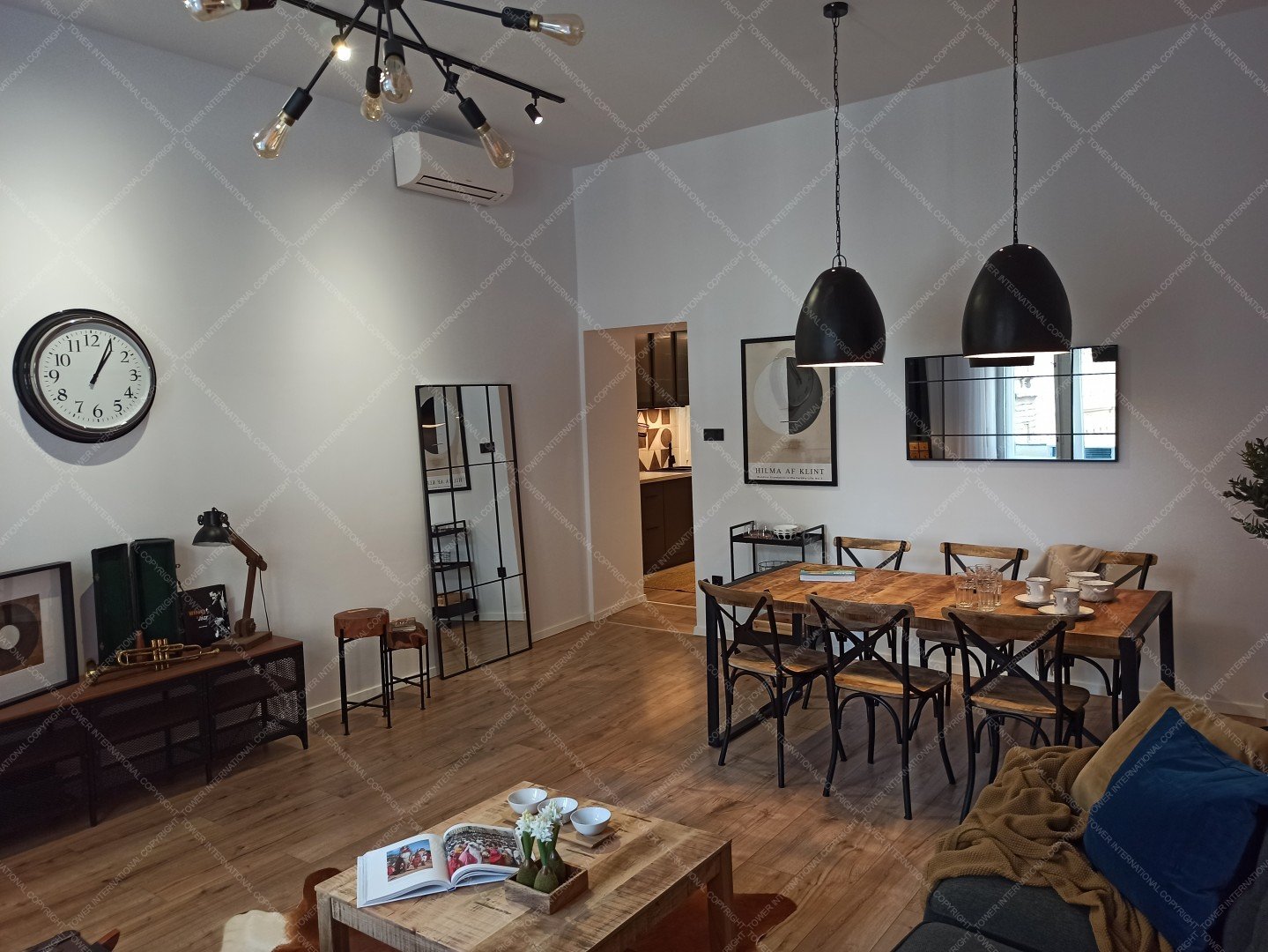 A newly renovated 55 m² apartment is for sale on Vas Street in the popular Palace District. The renovation and modernization work covered everything, both technically and aesthetically. Structural changes were made to the old kitchen, which was converted into a spacious bedroom with a separate bathroom and wardrobe, and there is also a separate toilet off the hallway. The kitchen is fully equipped, which, thanks to the size of the hallway, was also installed here, giving an even greater sense of space to the already spacious living room, which is the focal point of the apartment. Heating is provided by a modern heat pump system, which takes care of both heating and cooling in the property. The ceiling height typical of bourgeois houses fits perfectly with the industrial atmosphere of the interior. The neighborhood is very popular and livable, with several universities, restaurants, and supermarkets nearby, and ideal transportation links. Metro, bus, and tram stops are within a few minutes' walk. All furniture shown in the pictures is included in the purchase price!