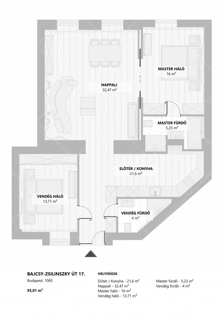 We are offering for sale a 93sqm (88 on the deed), freshly and exceptionally renovated classical apartment in the heart of Budapest, at the Basilica, district VI. The apartment is located on the 3rd floor of a beautiful, well kept classical building. It is characterized by modern, exclusive solutions.