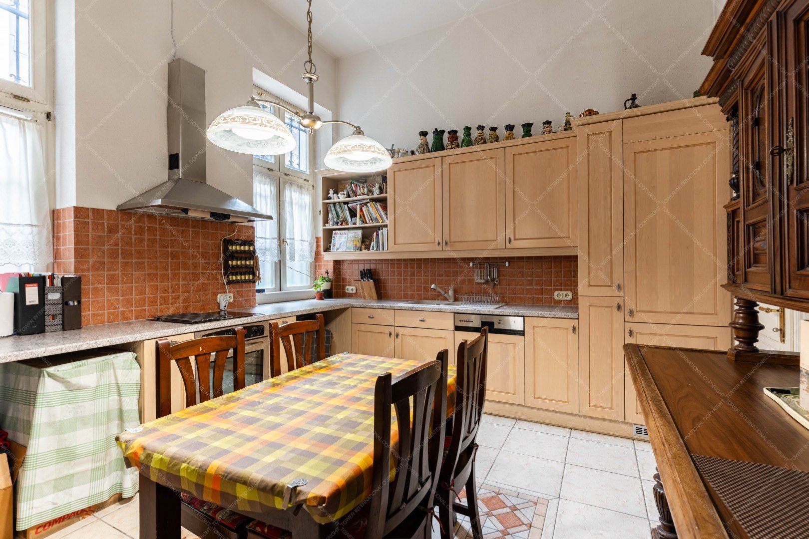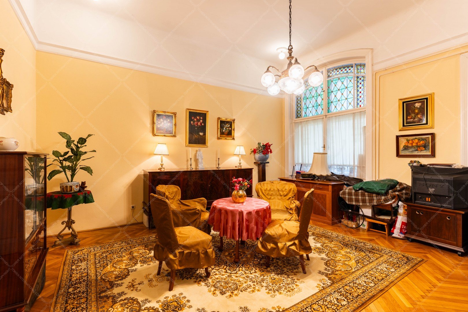 The apartment features high ceilings (3.8 m) and a practical layout. It has southeast-facing courtyard rooms and northwest-facing street-view windows, providing excellent natural light throughout the day. Since 2000, several renovations have taken place: exterior doors and windows were replaced or refurbished five years ago, the entire heating system was modernized 7–8 years ago, and a solar panel system installed in 2016 helps keep utility costs low. The monthly common cost is HUF 44,000, and thanks to the solar panels, the electricity bill is virtually zero.