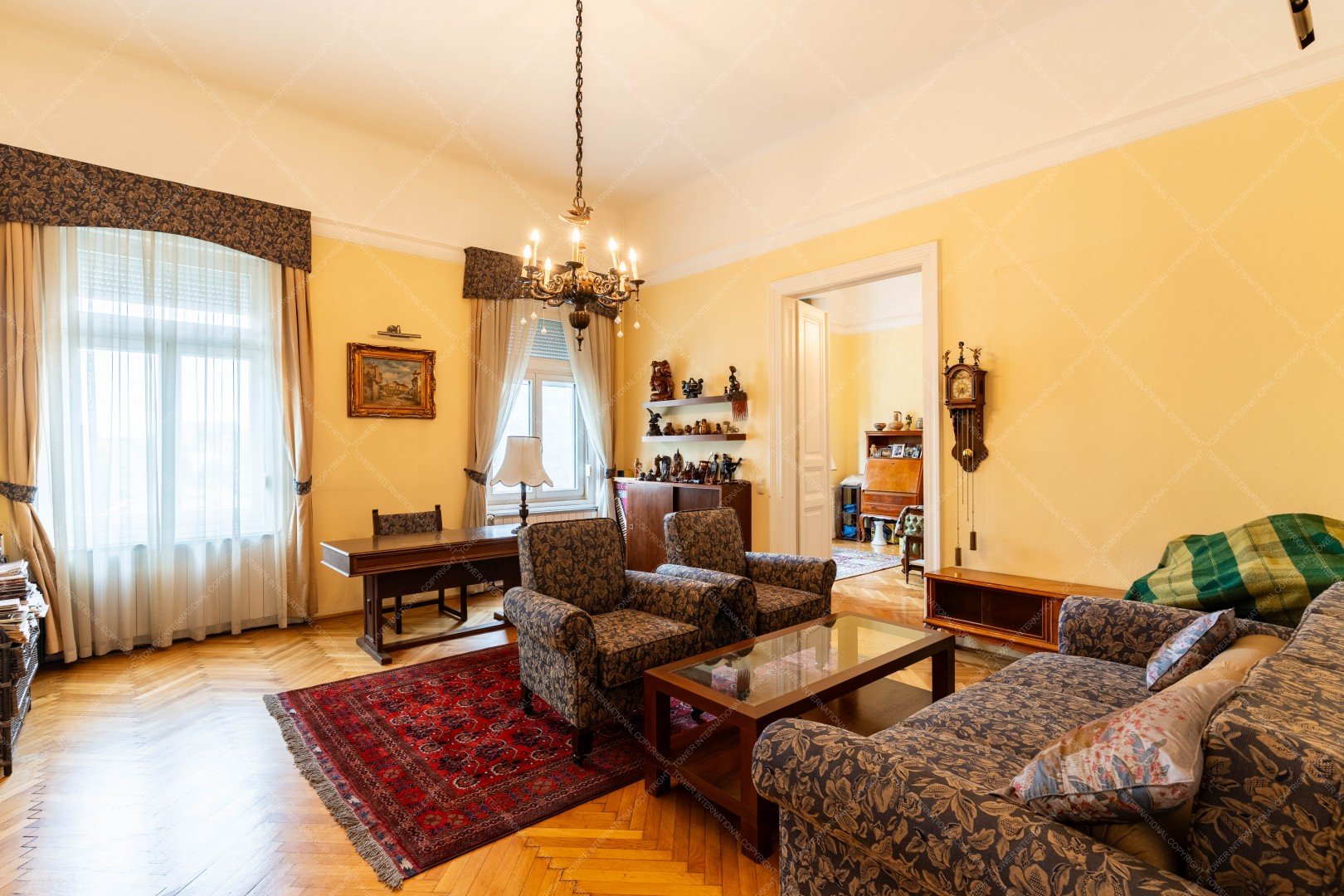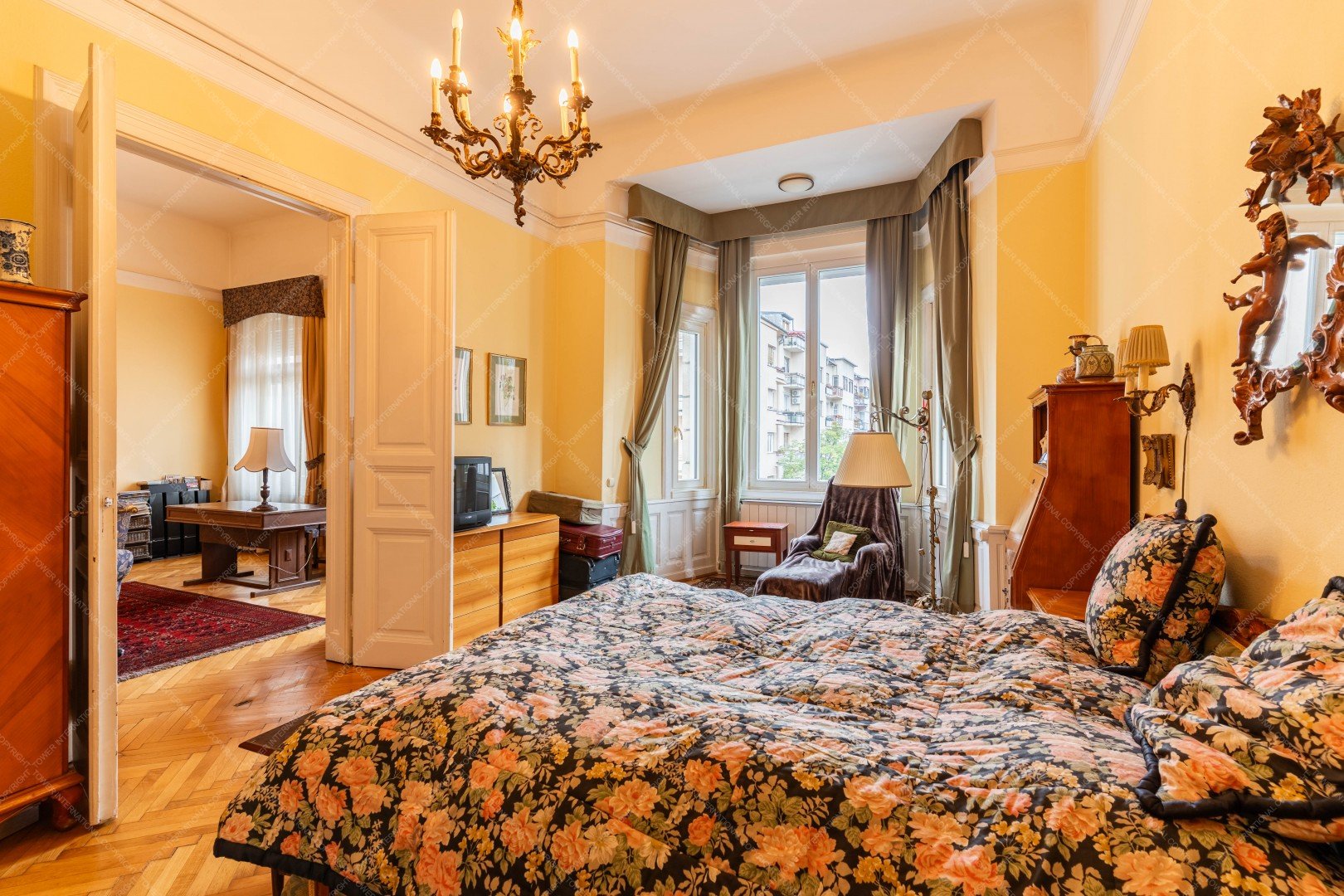 The apartment currently has 4 rooms, but its layout is flexible and can even be converted into two separate units.