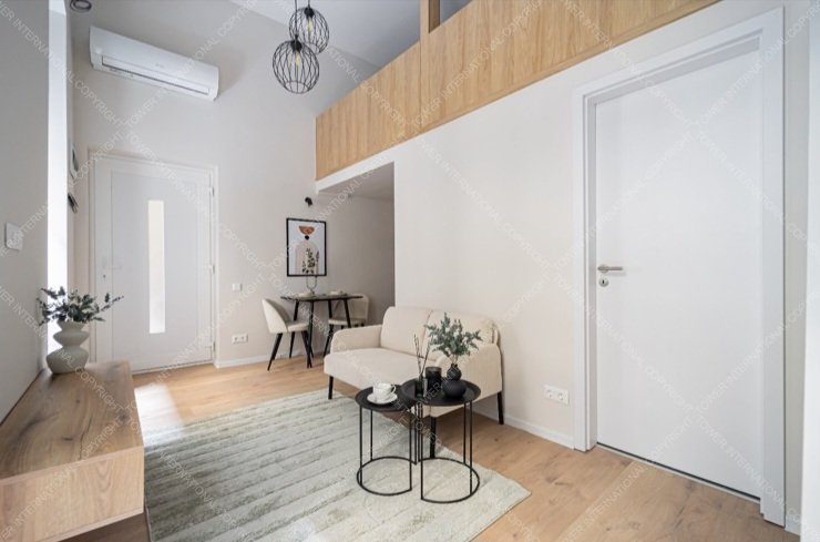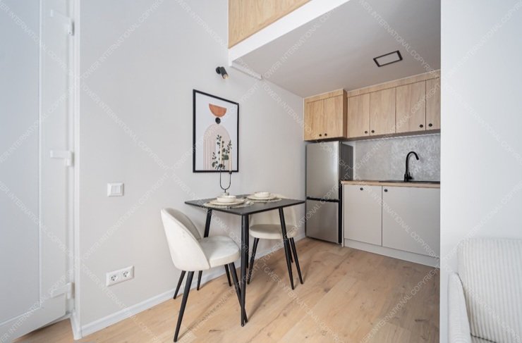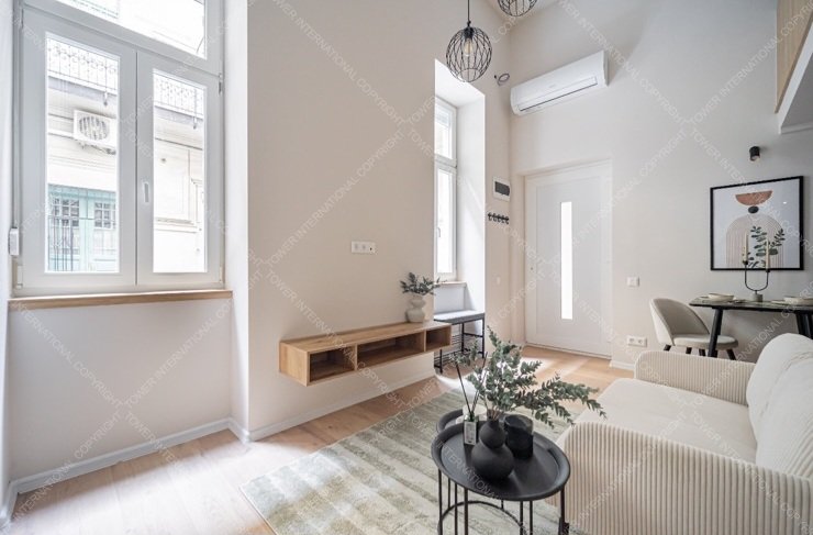 28 sqm, newly renovated, furnished, air-conditioned apartment (22+10 m2 with a gallery) is for sale in the Palace Quarter, on Csepreghy Street. The studio has a floor area of 22 m2 and a 10 m2 gallery, which houses an American-style kitchen with a living room, a gallery bedroom, and a bathroom with a shower.