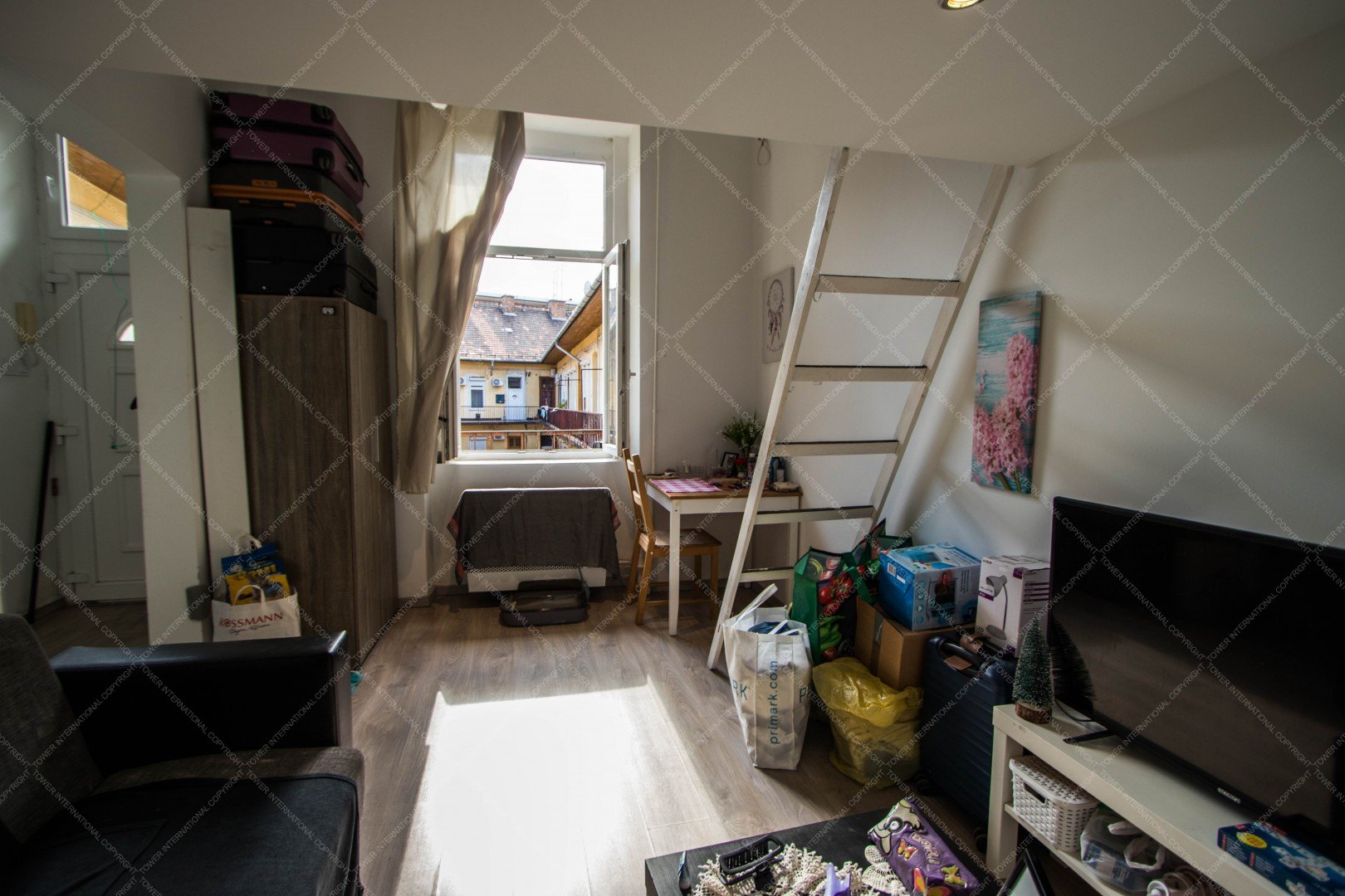 Cozy studio apartment with 24 m² + mezzanine, located on the second floor in a quiet inner courtyard. The building façade is well maintained and in good condition.